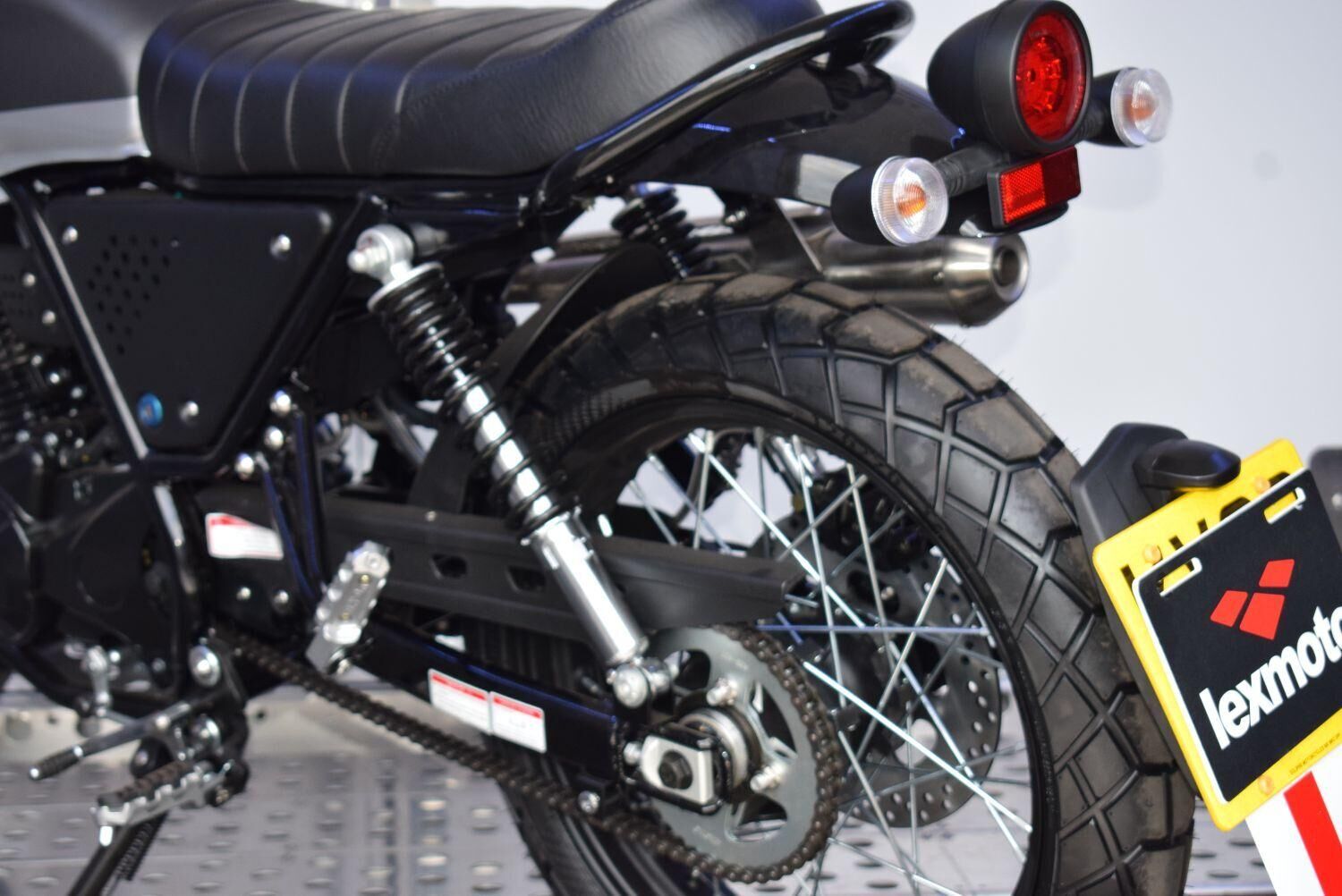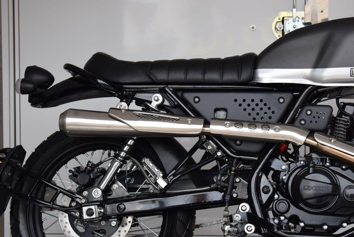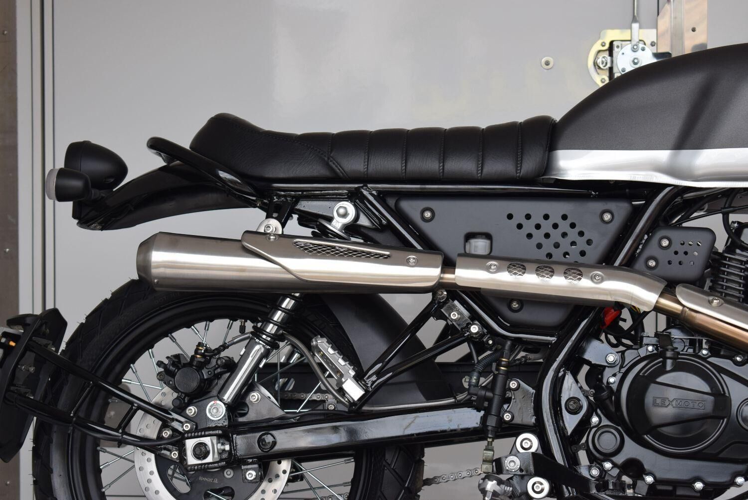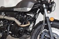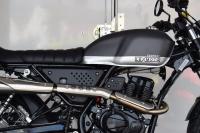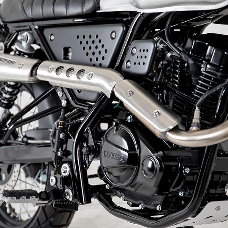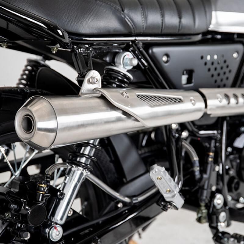 The standard exhaust on this bike is stainless steel and offers improved sound & durability.