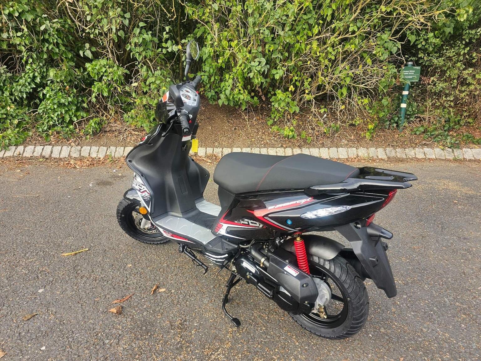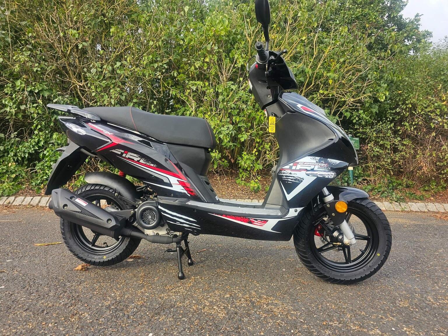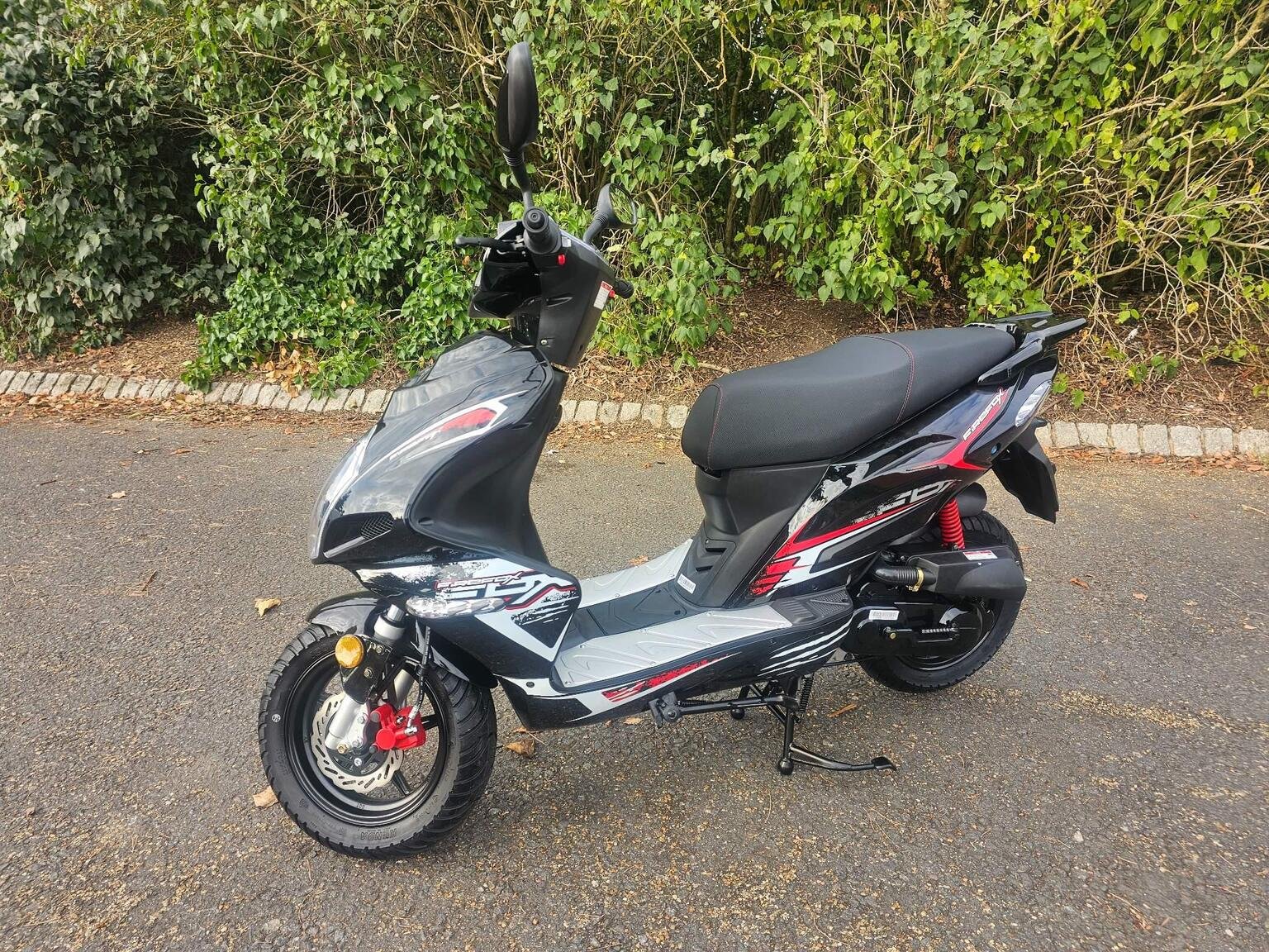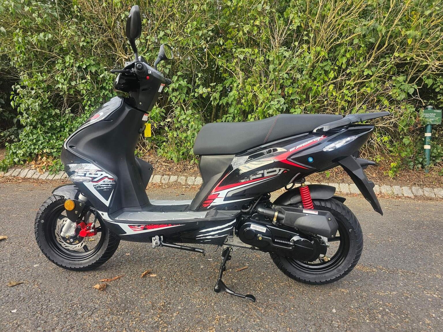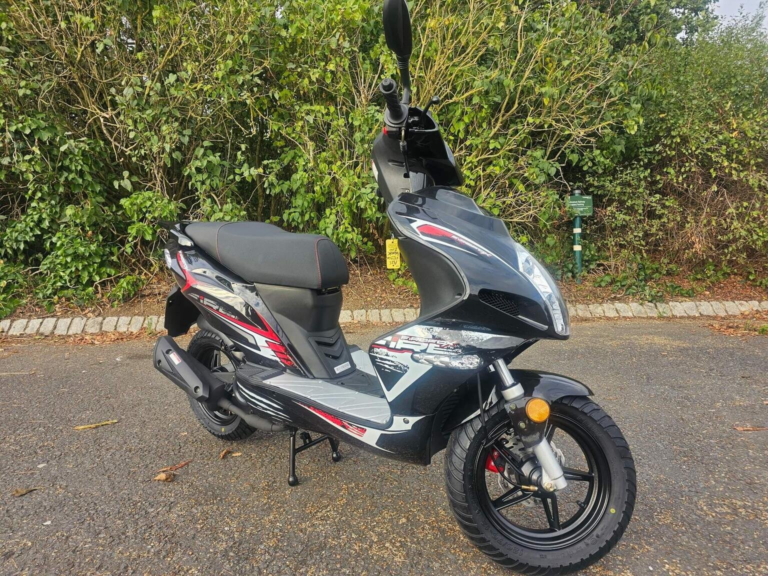 Standard equipment includes, under seat storage, rear luggage rack which will accept our optional Luggage Box, mirrors, dual marked speedometer, a fuel gauge and aluminium foot boards.