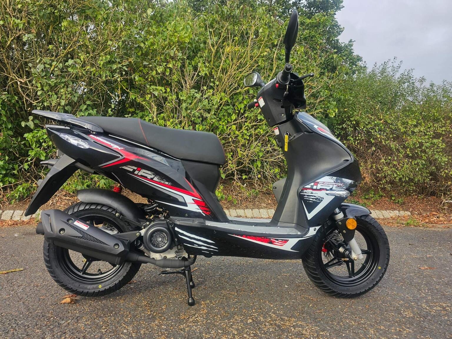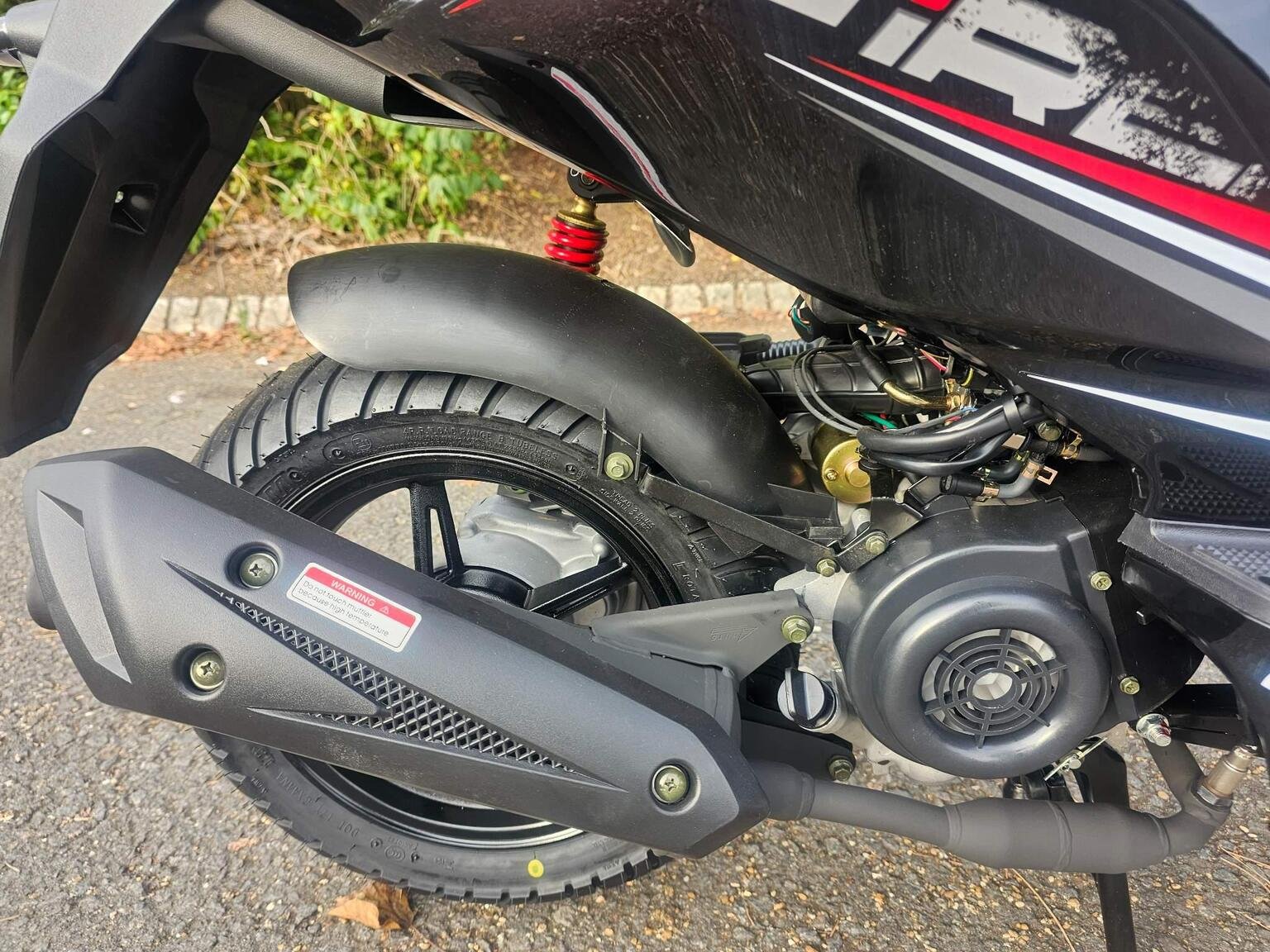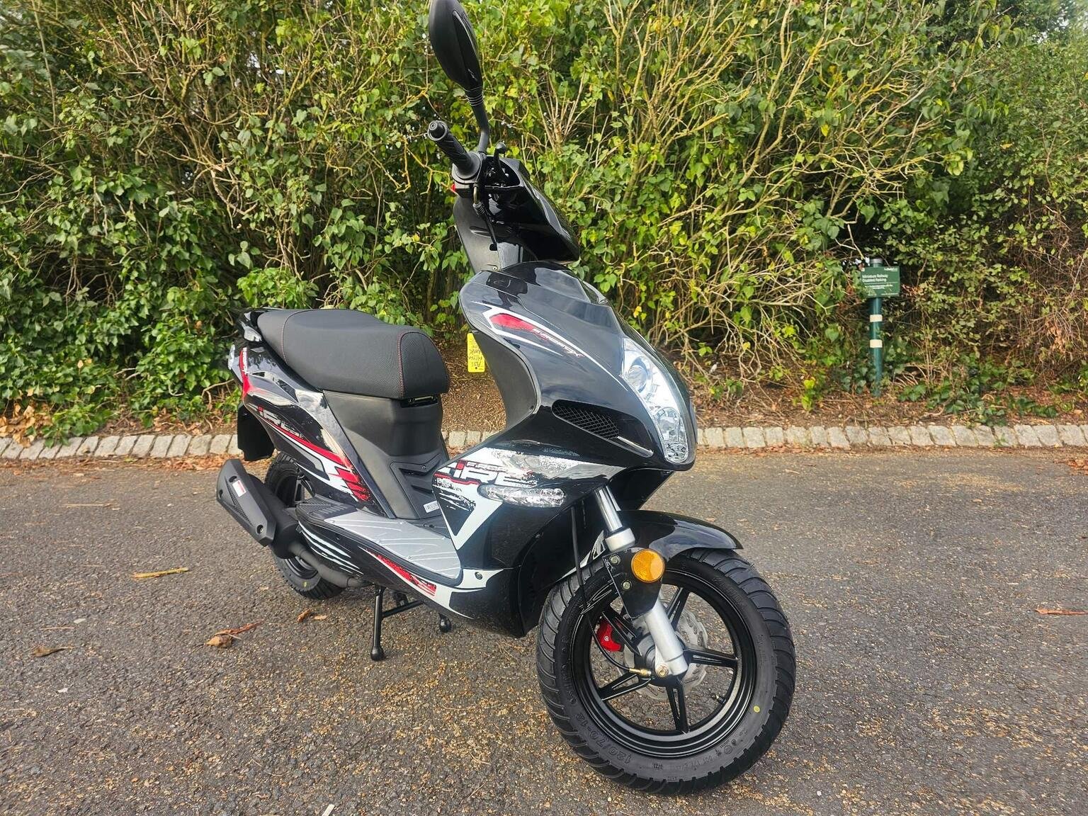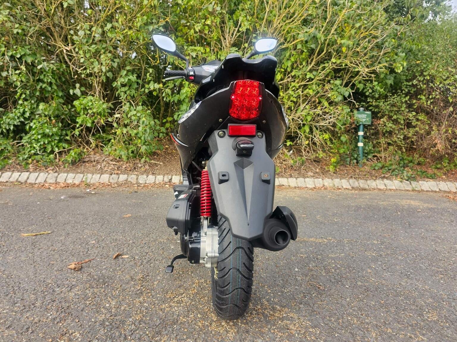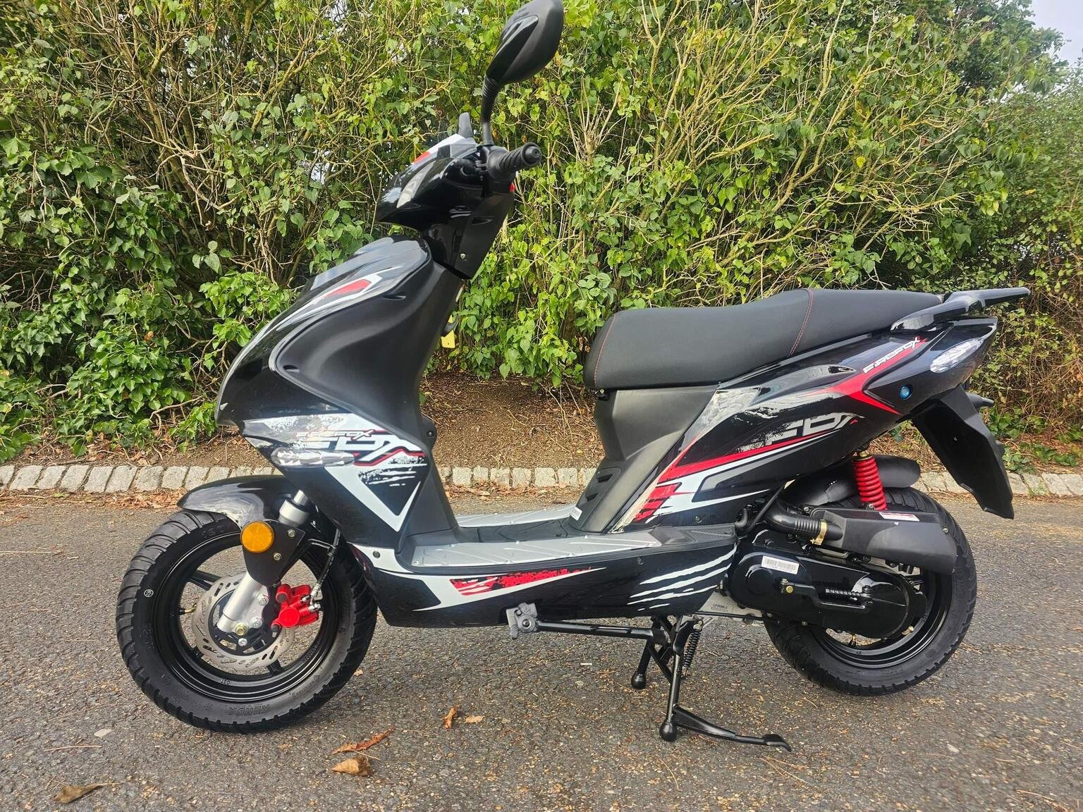 Standard equipment includes, under seat storage, rear luggage rack which will accept our optional Luggage Box, mirrors, dual marked speedometer, a fuel gauge and aluminium foot boards.