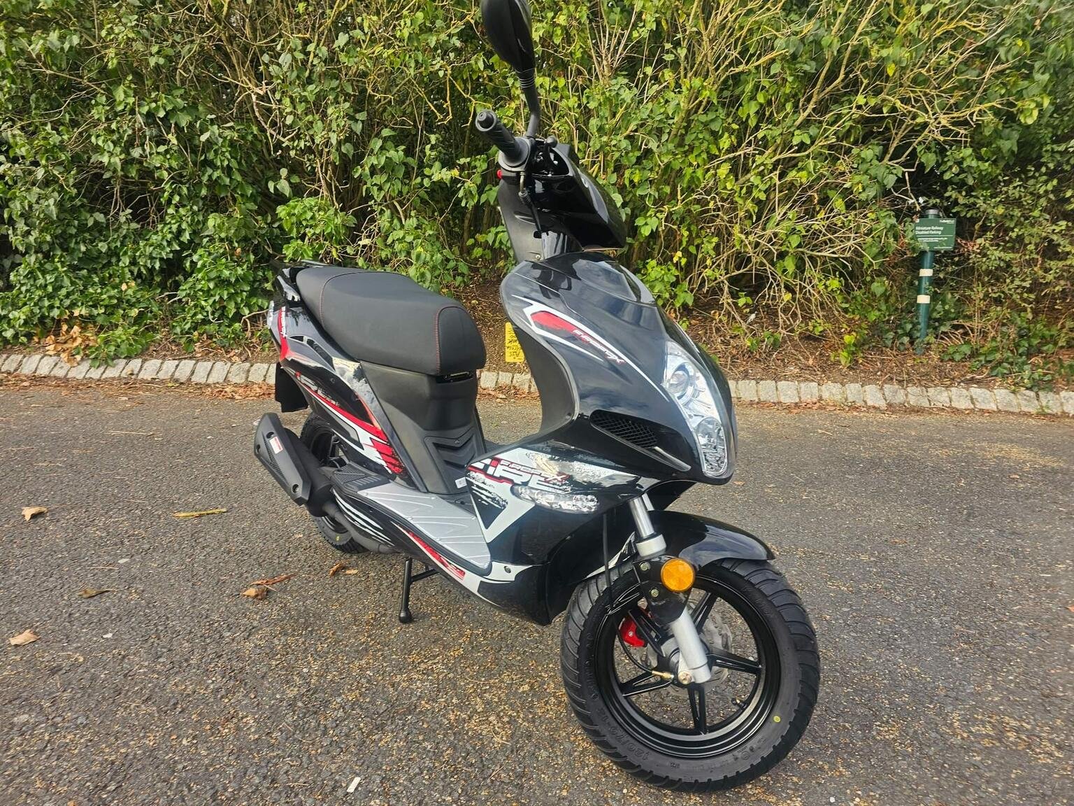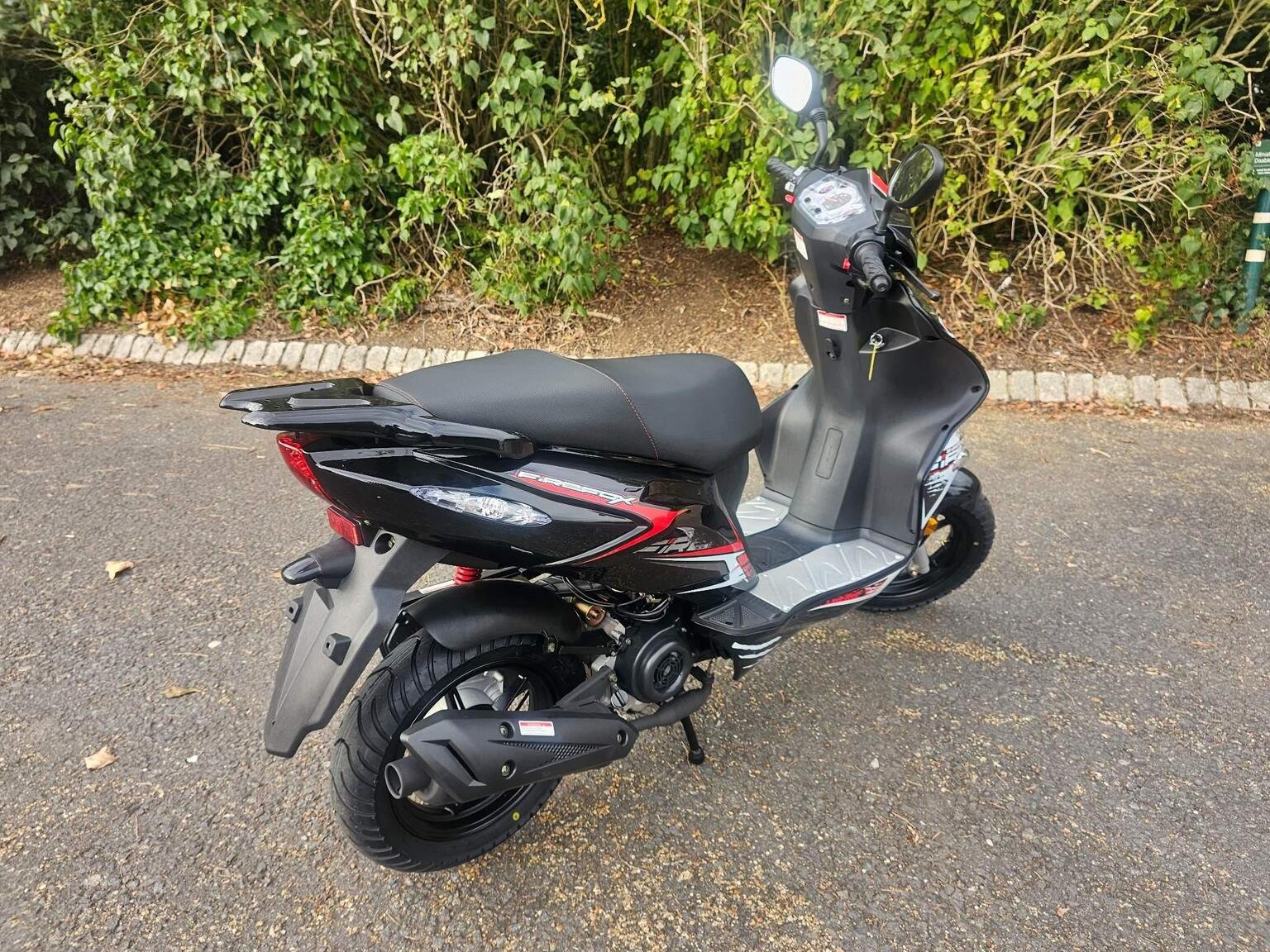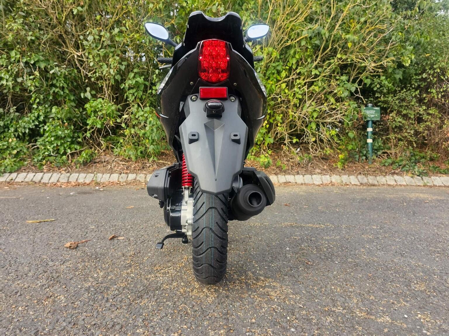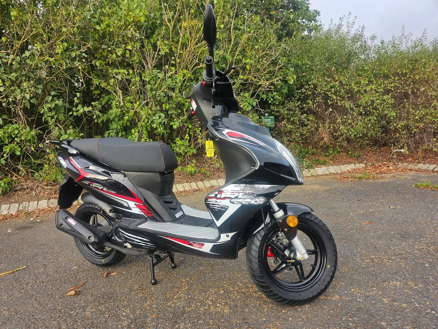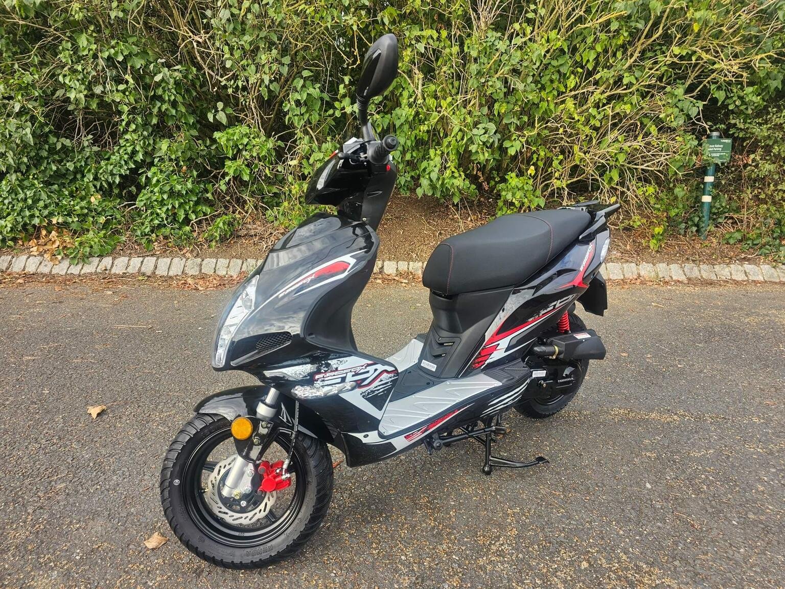 Standard equipment includes, under seat storage, rear luggage rack which will accept our optional Luggage Box, mirrors, dual marked speedometer, a fuel gauge and aluminium foot boards.