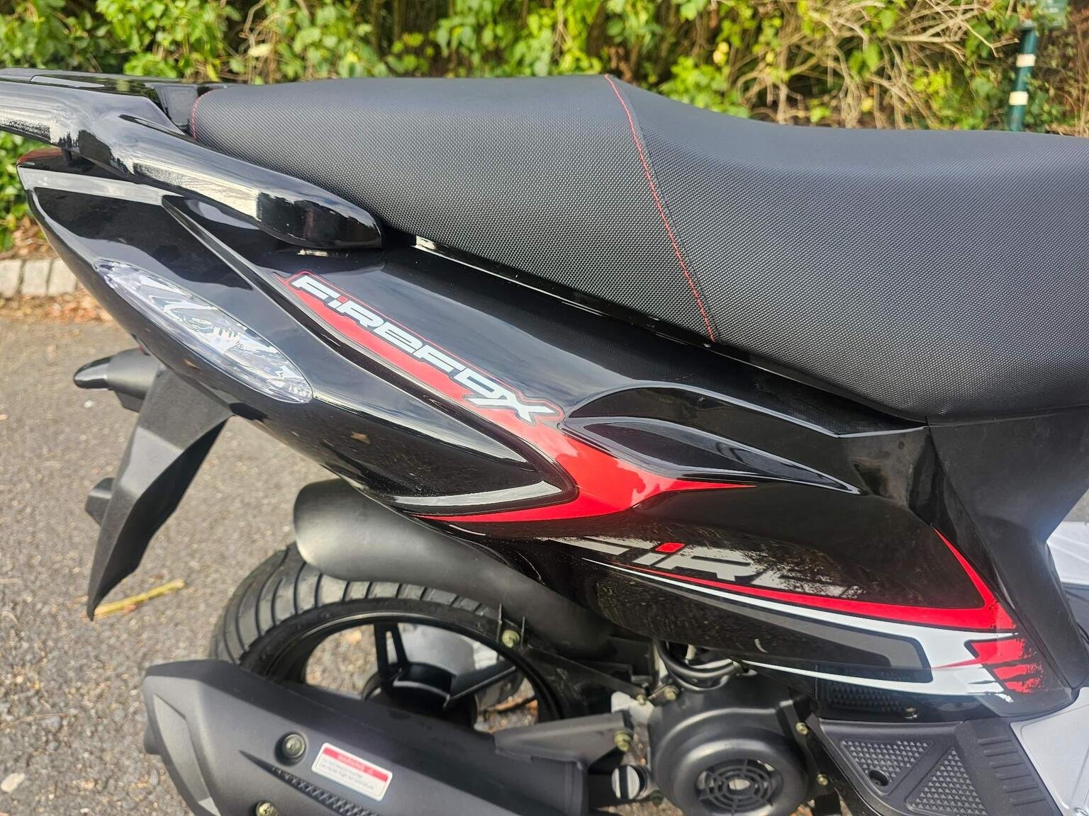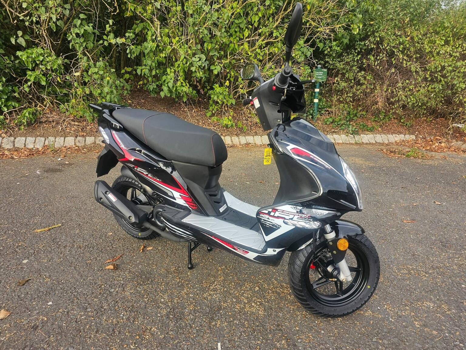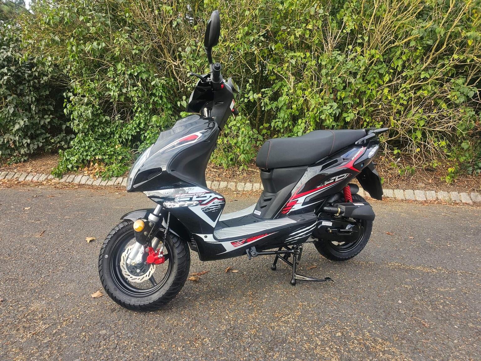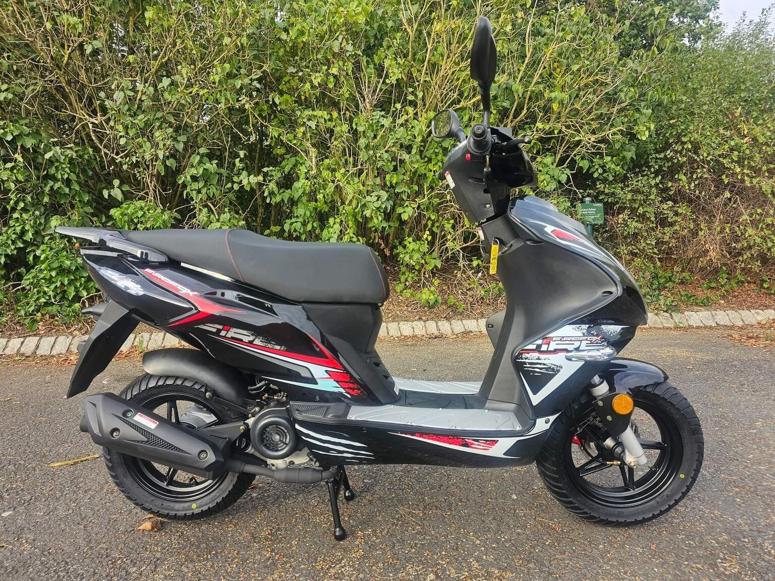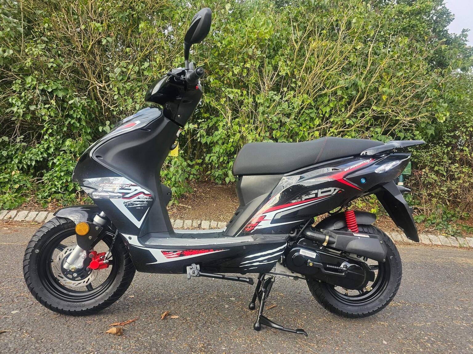 Standard equipment includes, under seat storage, rear luggage rack which will accept our optional Luggage Box, mirrors, dual marked speedometer, a fuel gauge and aluminium foot boards.