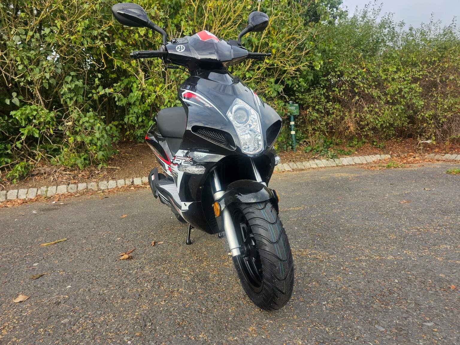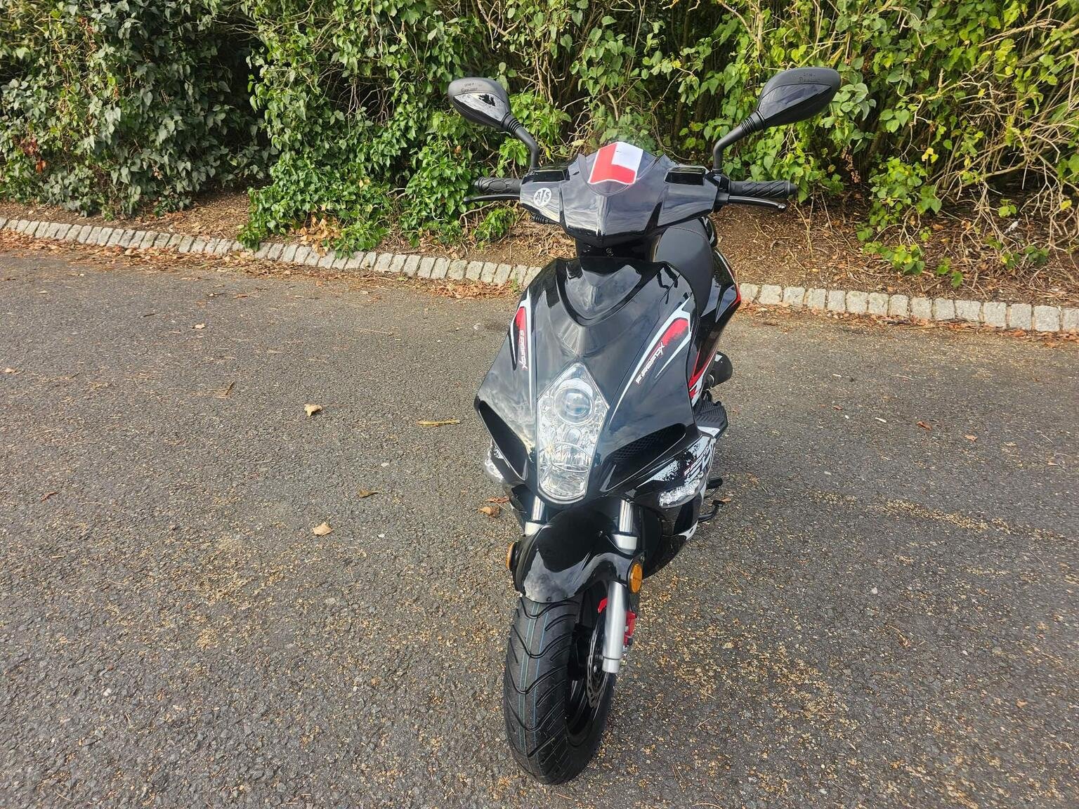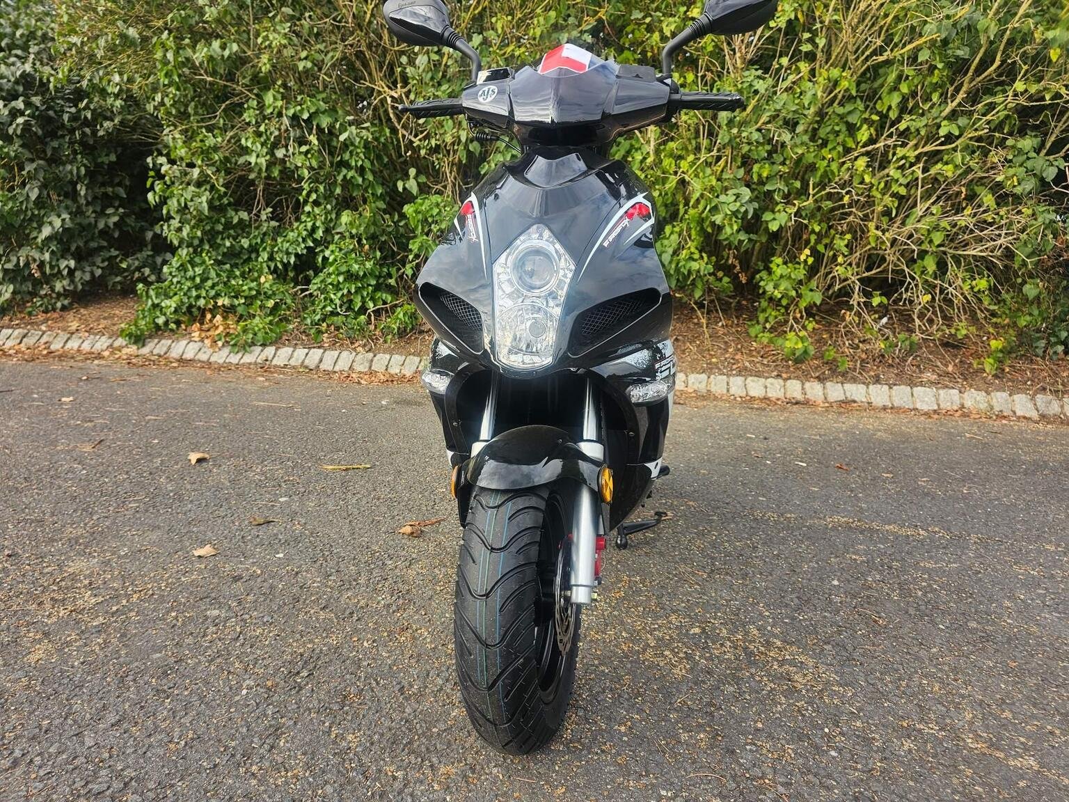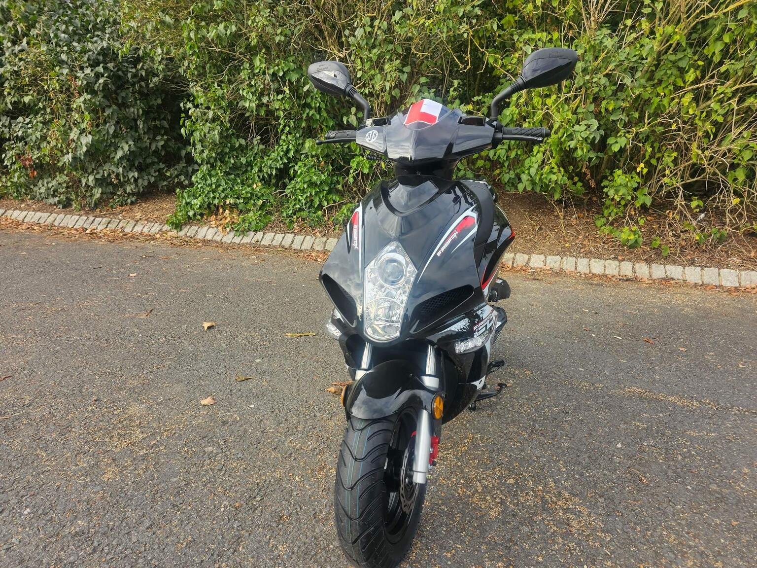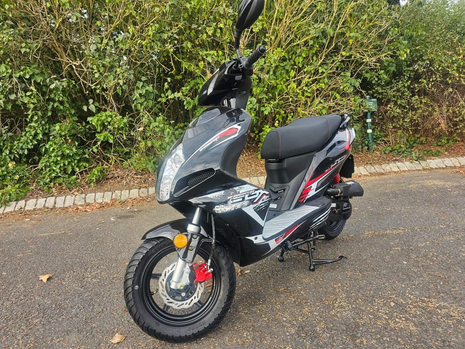 Standard equipment includes, under seat storage, rear luggage rack which will accept our optional Luggage Box, mirrors, dual marked speedometer, a fuel gauge and aluminium foot boards.