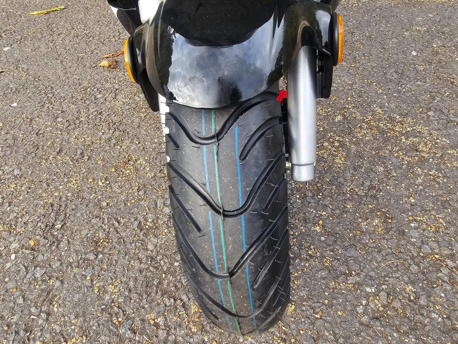 Finished in brilliant metallic Cobalt Blue, Glossy Black or Pearl white with vibrant graphics under a clear coat of lacquer.