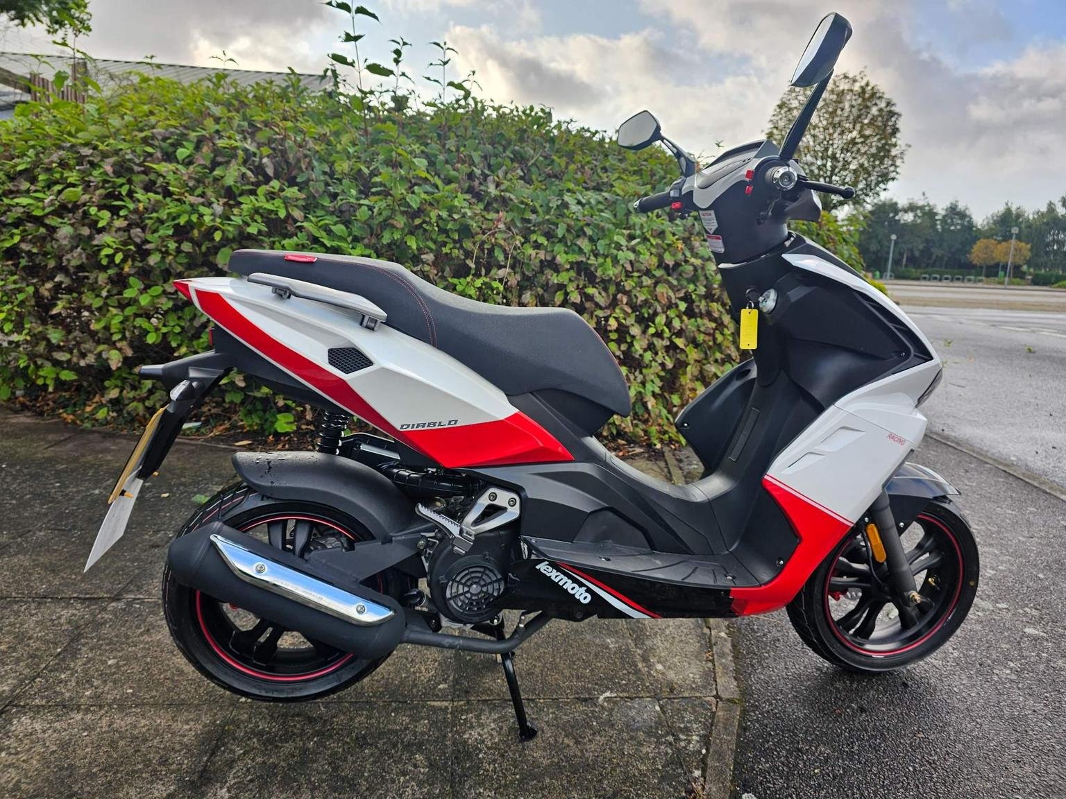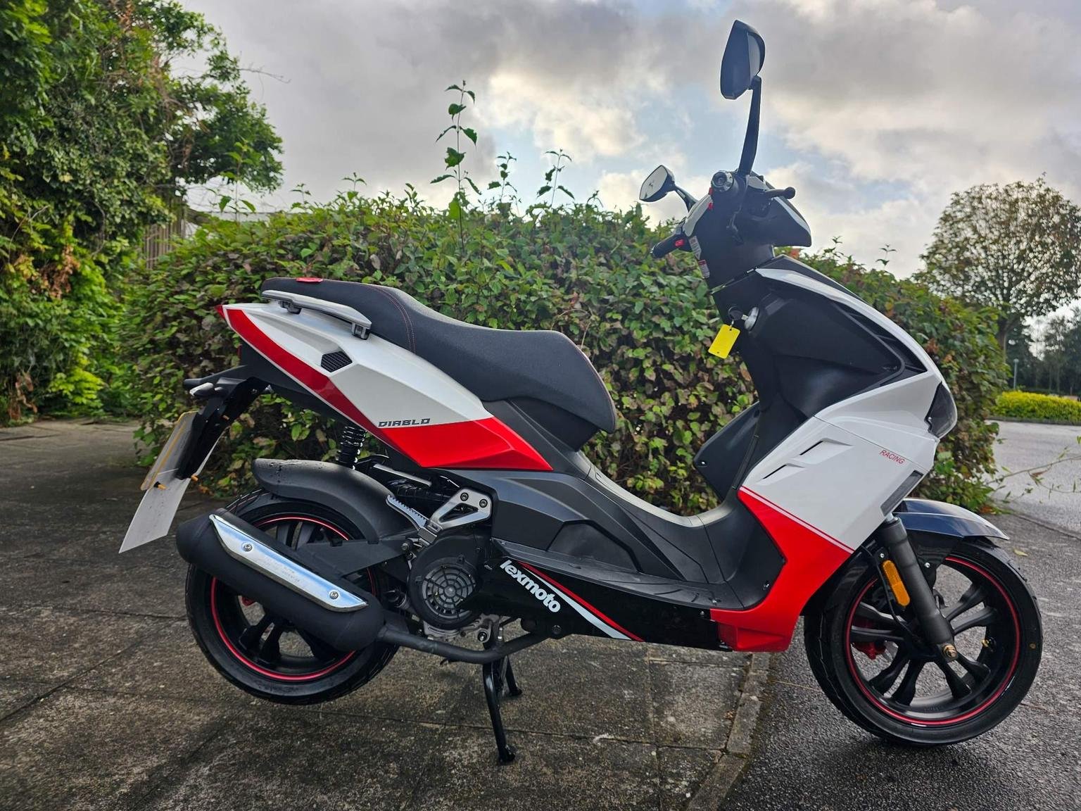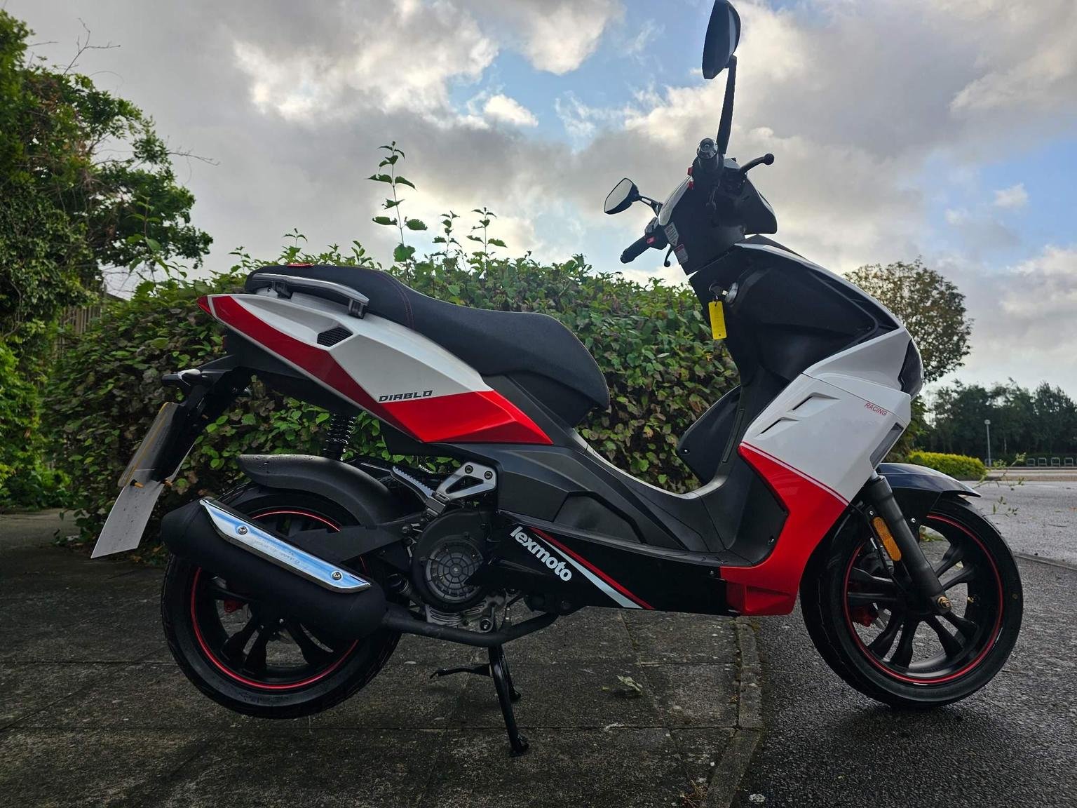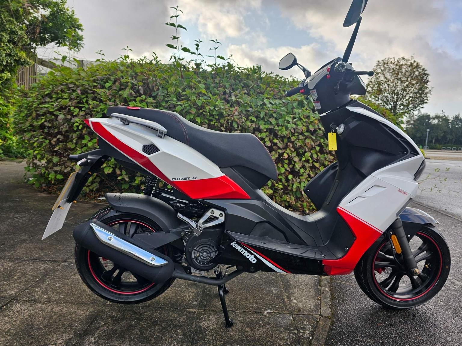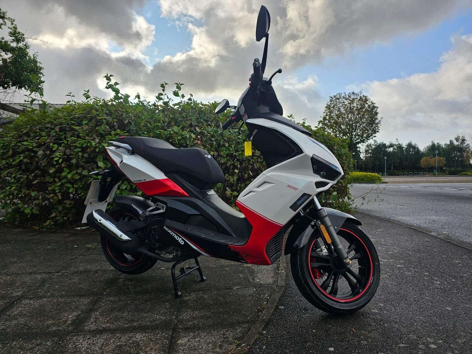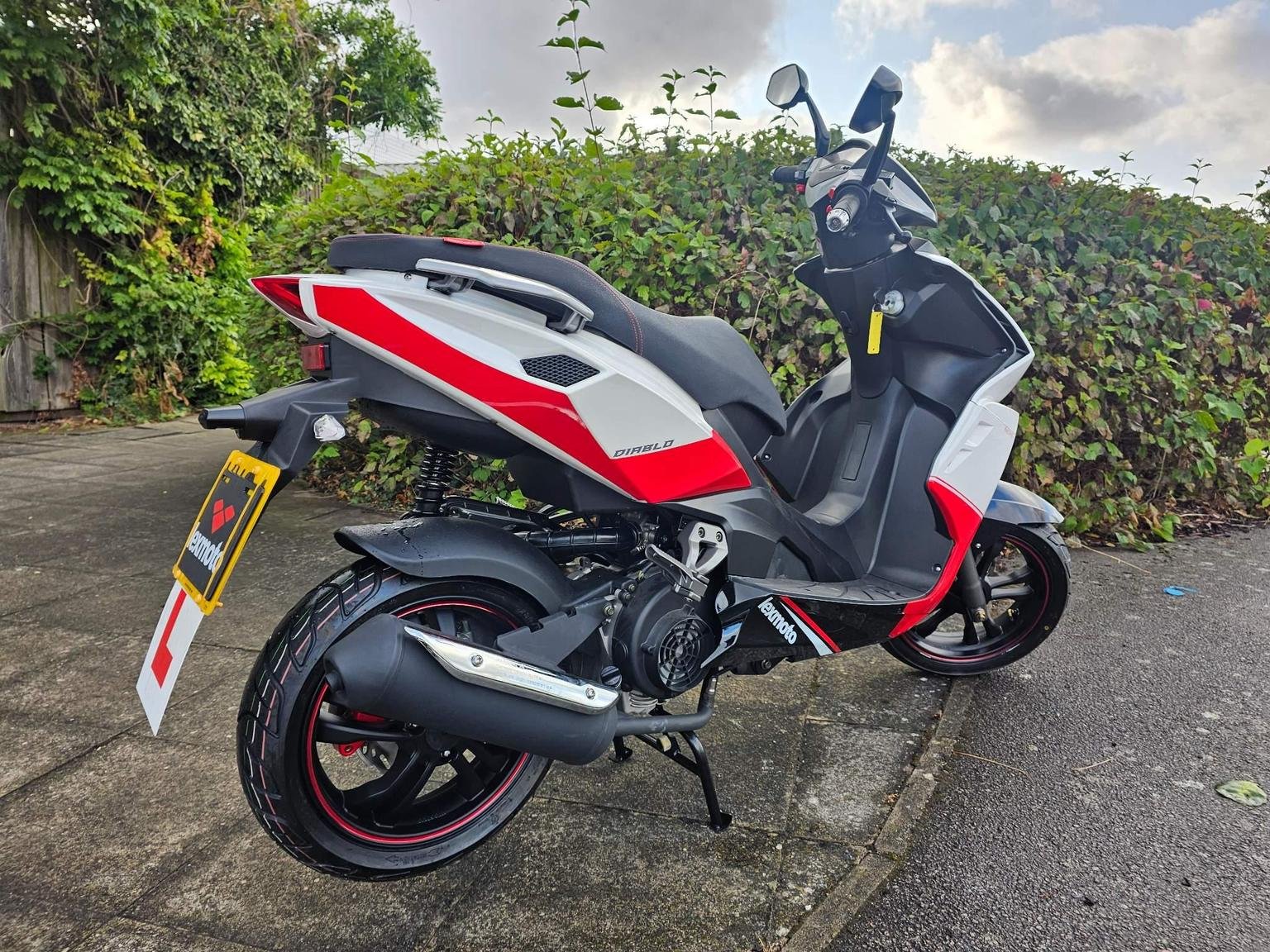 Sharp, sporty styling with an affordable price tag has made the Diablo a go-to choice for all learner legal riders making their own way in life. The racy 4 stroke engine packs a lot punch, and pair that with it`s lightweight frame the Diablo will have you flying off the line. A combined braking system with hydraulic disc brakes front and rear bring you to a safe and controlled stop every time. There`s a digital display and striking LED headlight unit that allows you to ride safely and illuminate the road ahead.