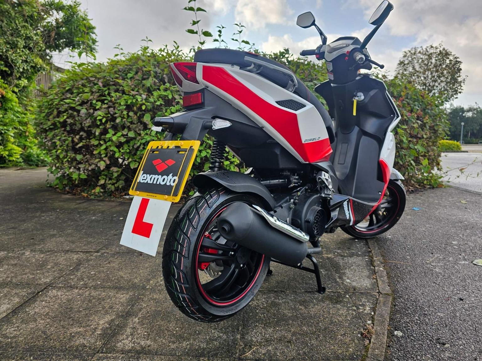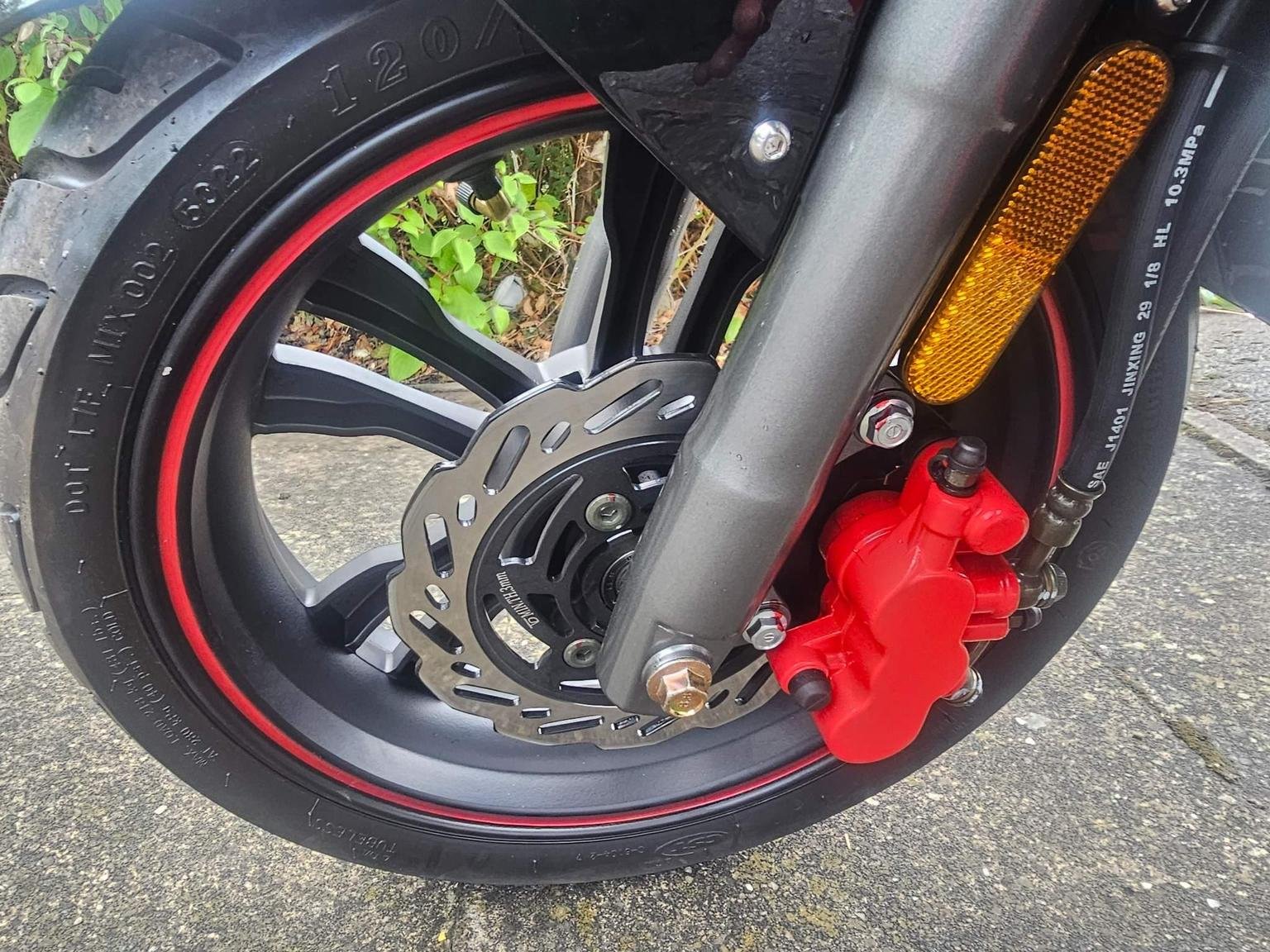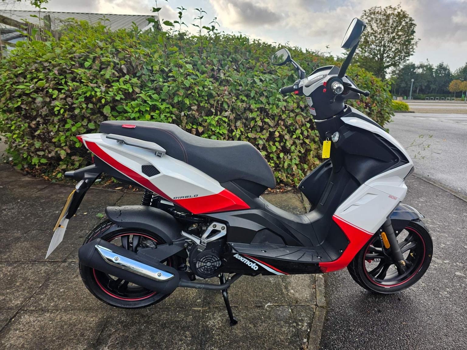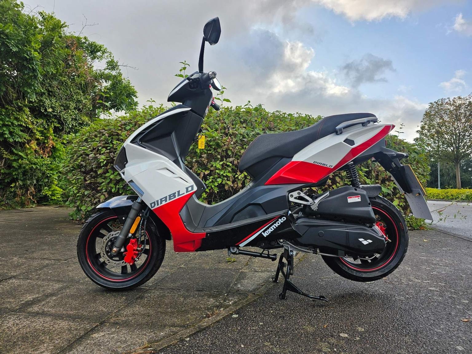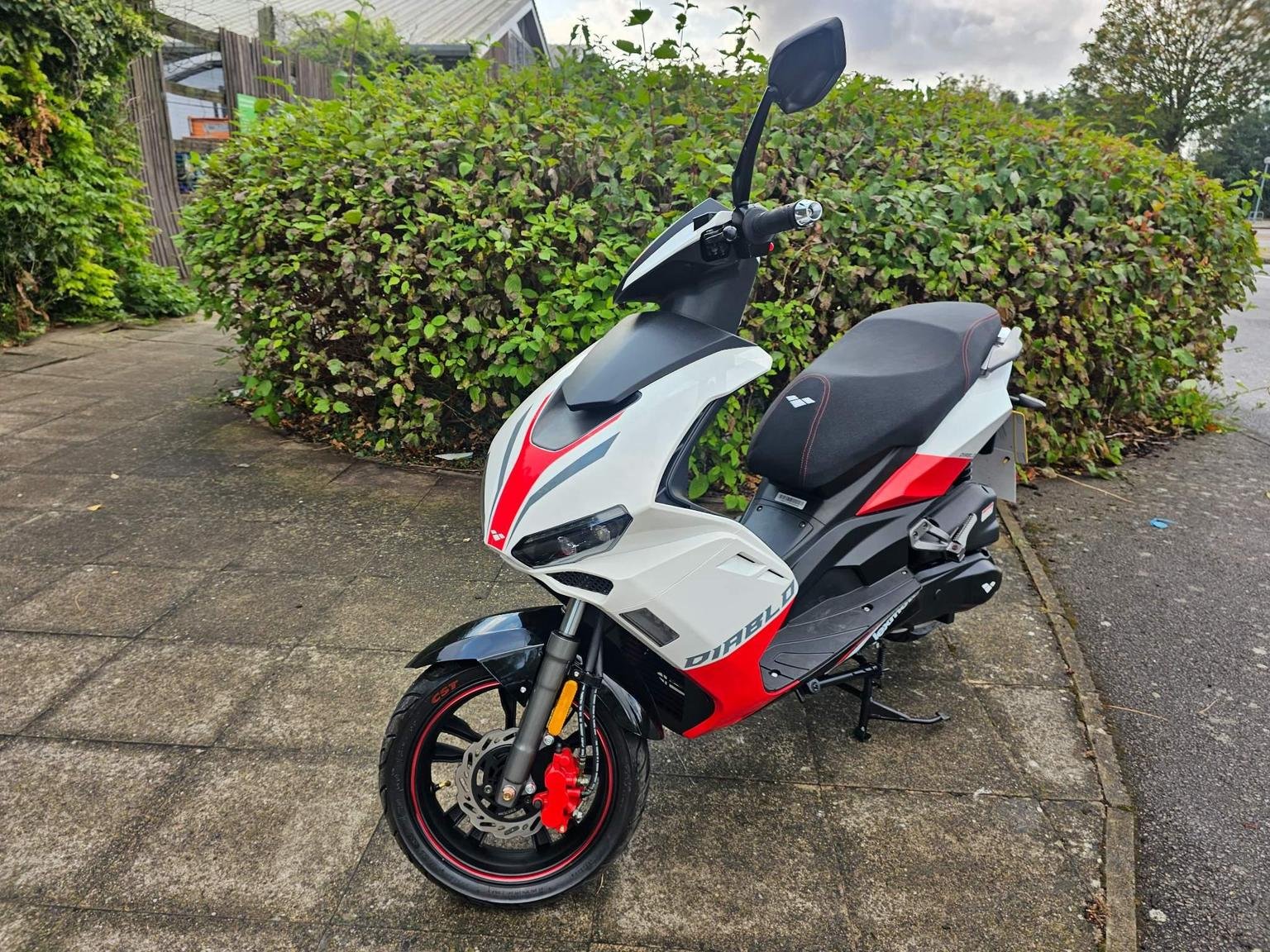 Sharp, sporty styling with an affordable price tag has made the Diablo a go-to choice for all learner legal riders making their own way in life. The racy 4 stroke engine packs a lot punch, and pair that with it`s lightweight frame the Diablo will have you flying off the line. A combined braking system with hydraulic disc brakes front and rear bring you to a safe and controlled stop every time. There`s a digital display and striking LED headlight unit that allows you to ride safely and illuminate the road ahead.