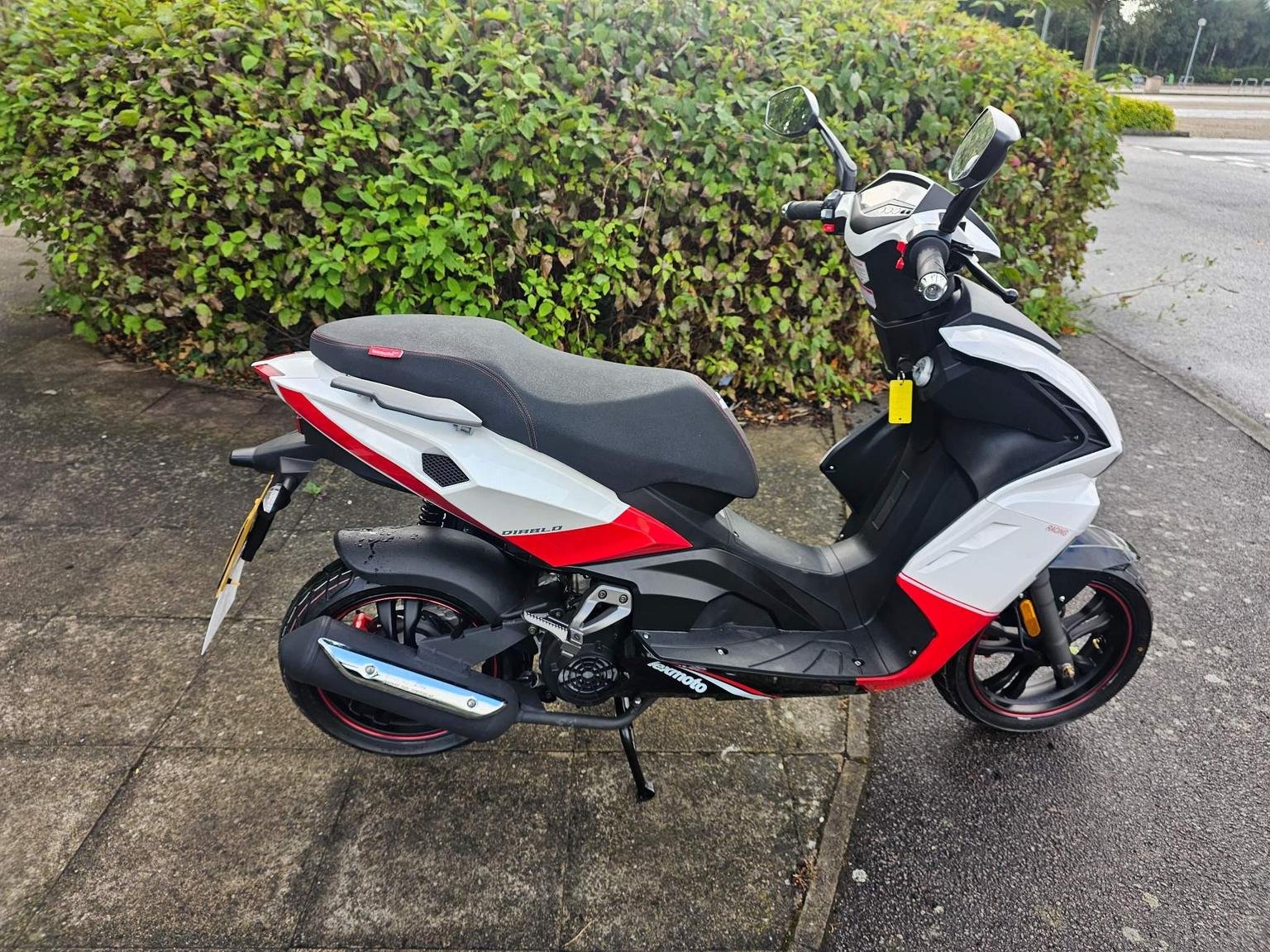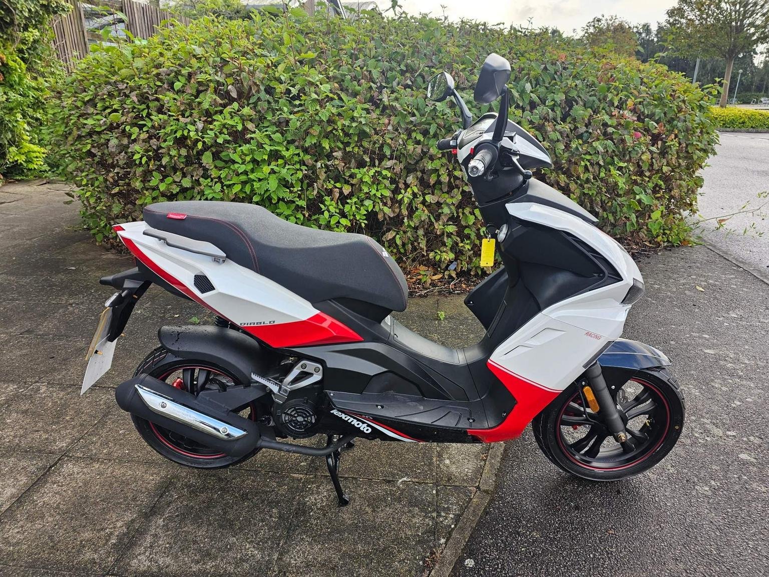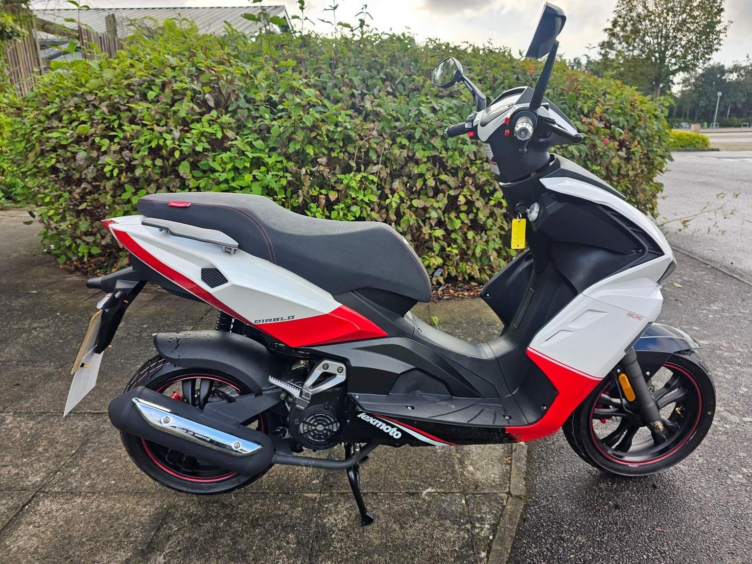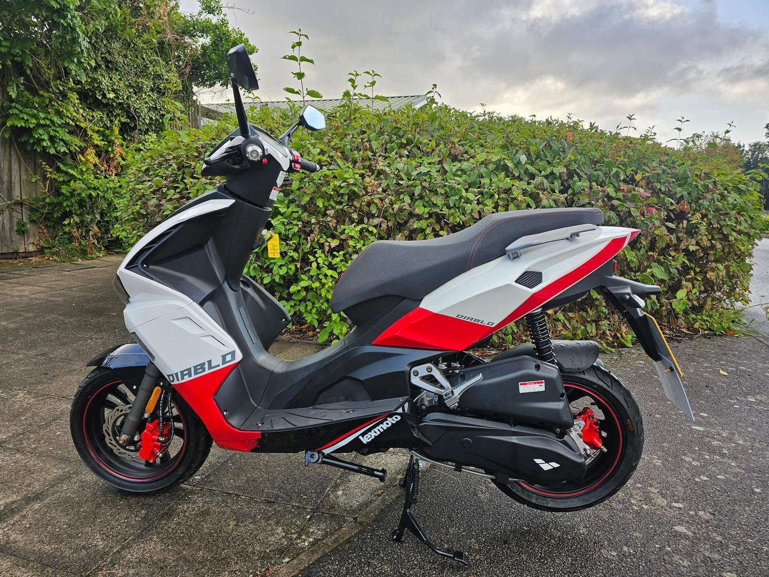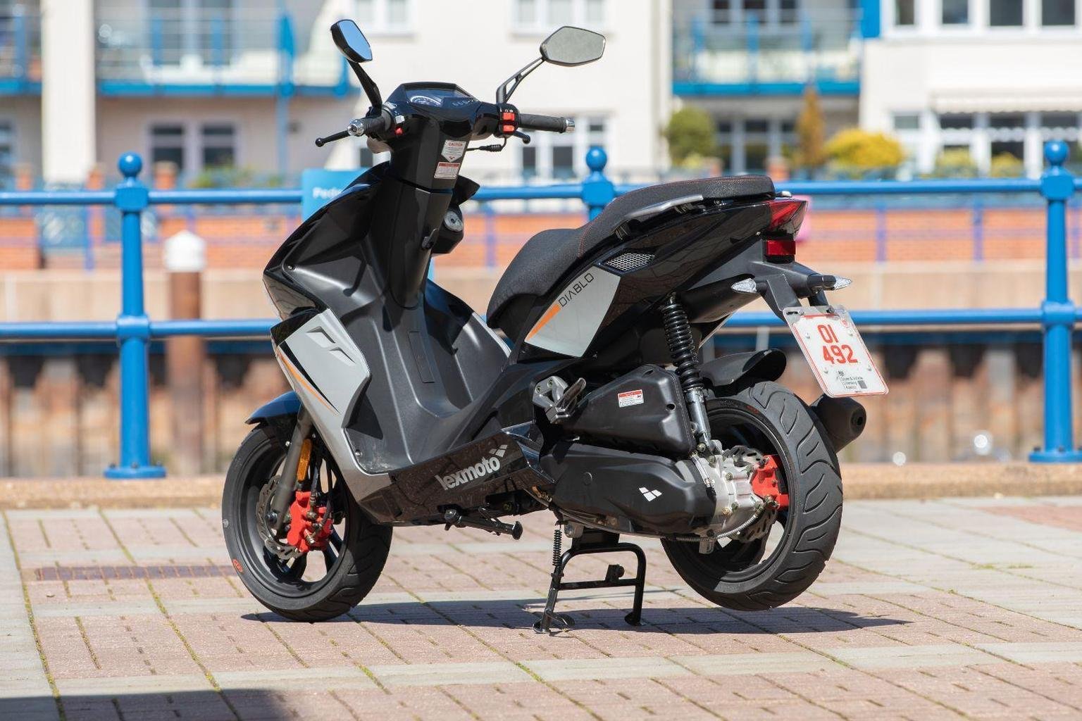 Sharp, sporty styling with an affordable price tag has made the Diablo a go-to choice for all learner legal riders making their own way in life. The racy 4 stroke engine packs a lot punch, and pair that with it`s lightweight frame the Diablo will have you flying off the line. A combined braking system with hydraulic disc brakes front and rear bring you to a safe and controlled stop every time. There`s a digital display and striking LED headlight unit that allows you to ride safely and illuminate the road ahead.