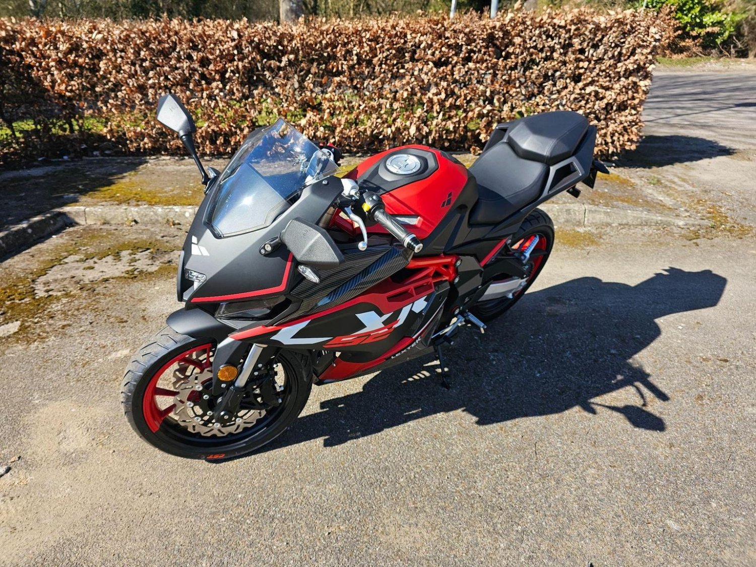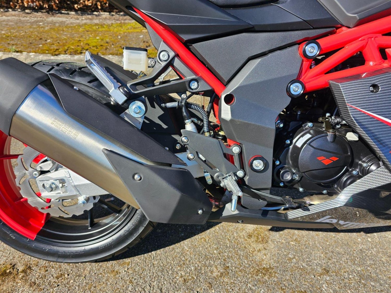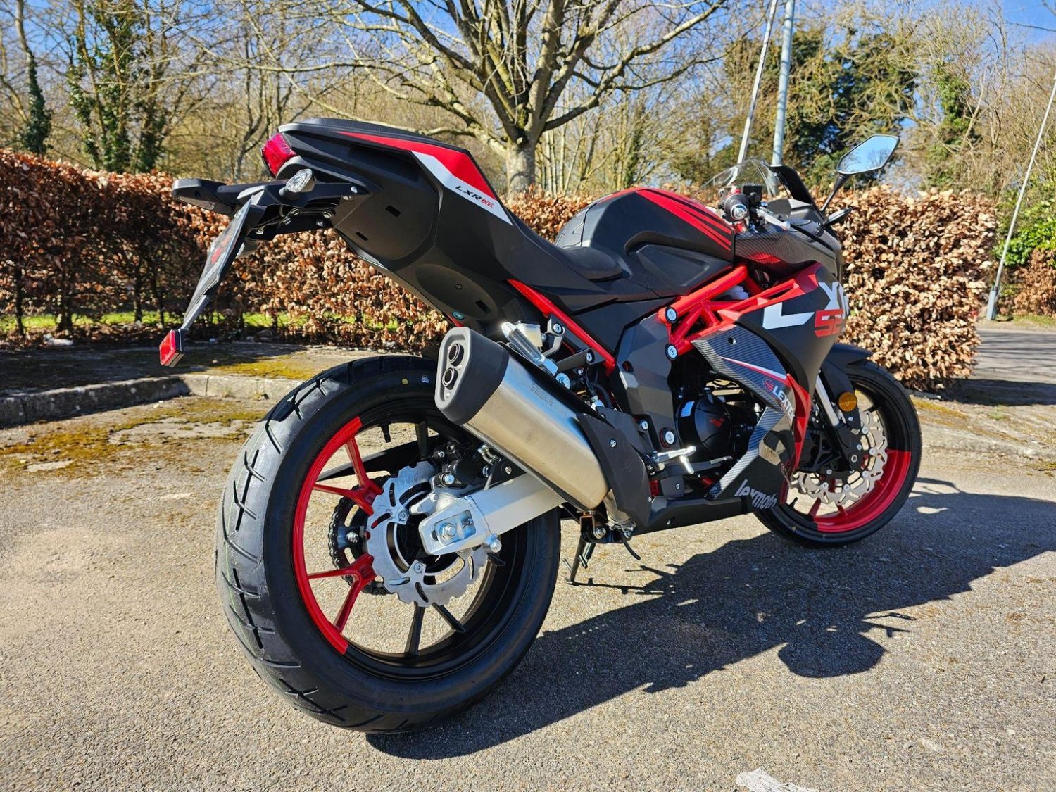 A proven class leader that`s dominated the sales charts, the LXR SE gets a full refresh for 2025. Updated to meet Euro 5.5 standards, at its heart sits an all-new 125cc single cylinder engine, offering better performance throughout the entire rev range, a better pick up on the throttle and a smoother ride. Performance isn`t the only headline figure though; a well-rounded chassis gives a sporting, yet comfortable experience. This is further complemented by a newly designed rear shock linkage, 37mm upside down forks and lightweight aluminium swingarm to give the LXR SE class leading handling. Upfront, the full colour TFT display unit adds a touch not seen before in the super sport 125 sector, and the aggressive LED headlight unit brings a distinctive look to the SE. Stopping comes courtesy of a twin petal disc brakes up front, with two pot callipers boasting yet another first in class. Our flagship model has just upped the ante considerably in the 125cc market, why not see what all the fuss is about?