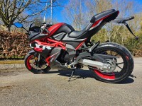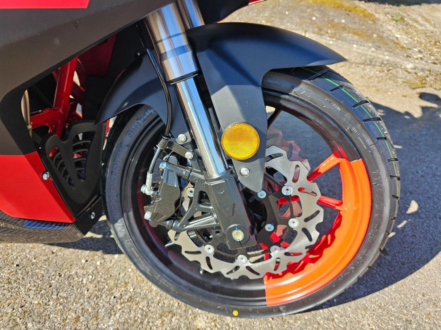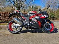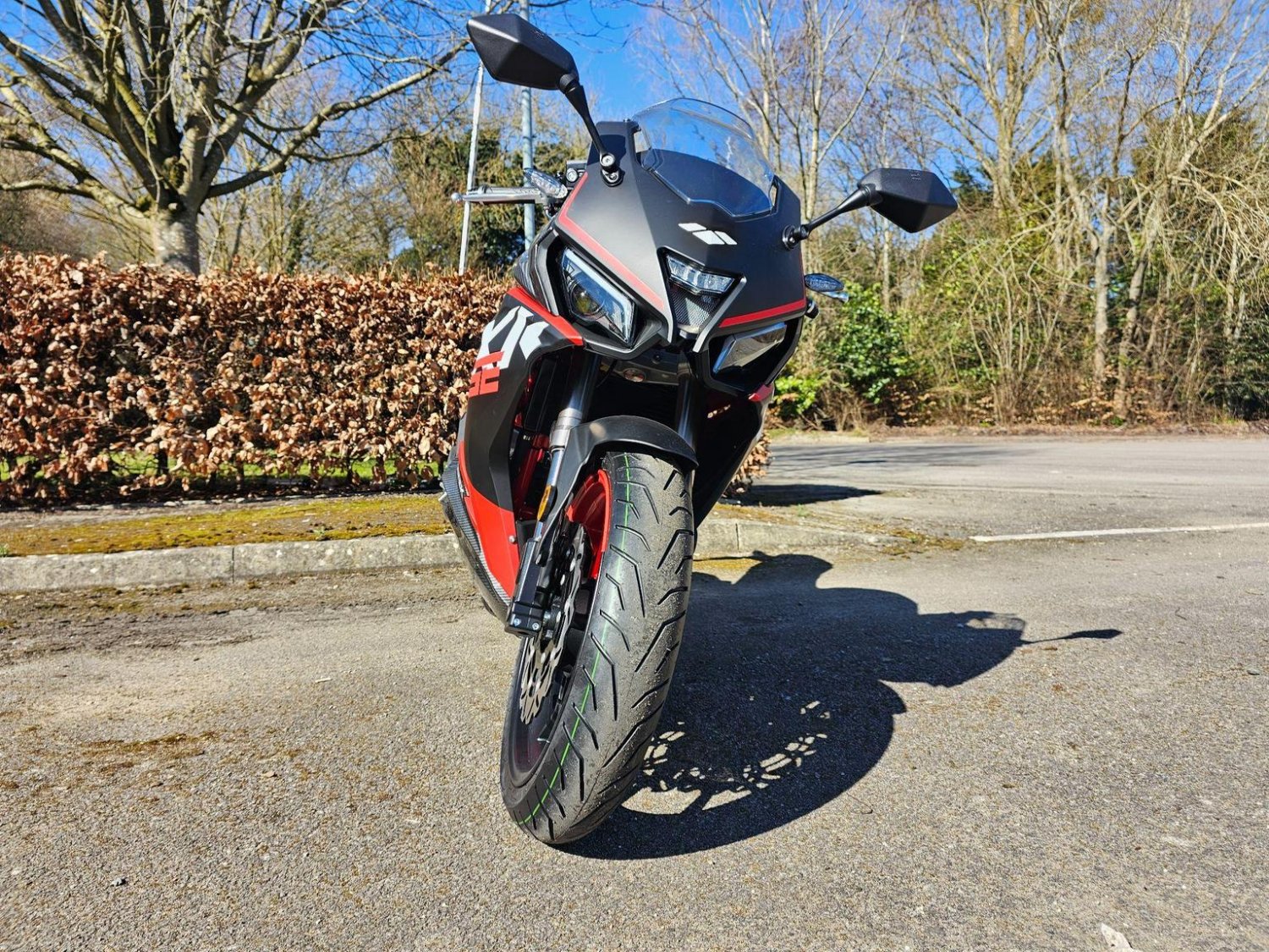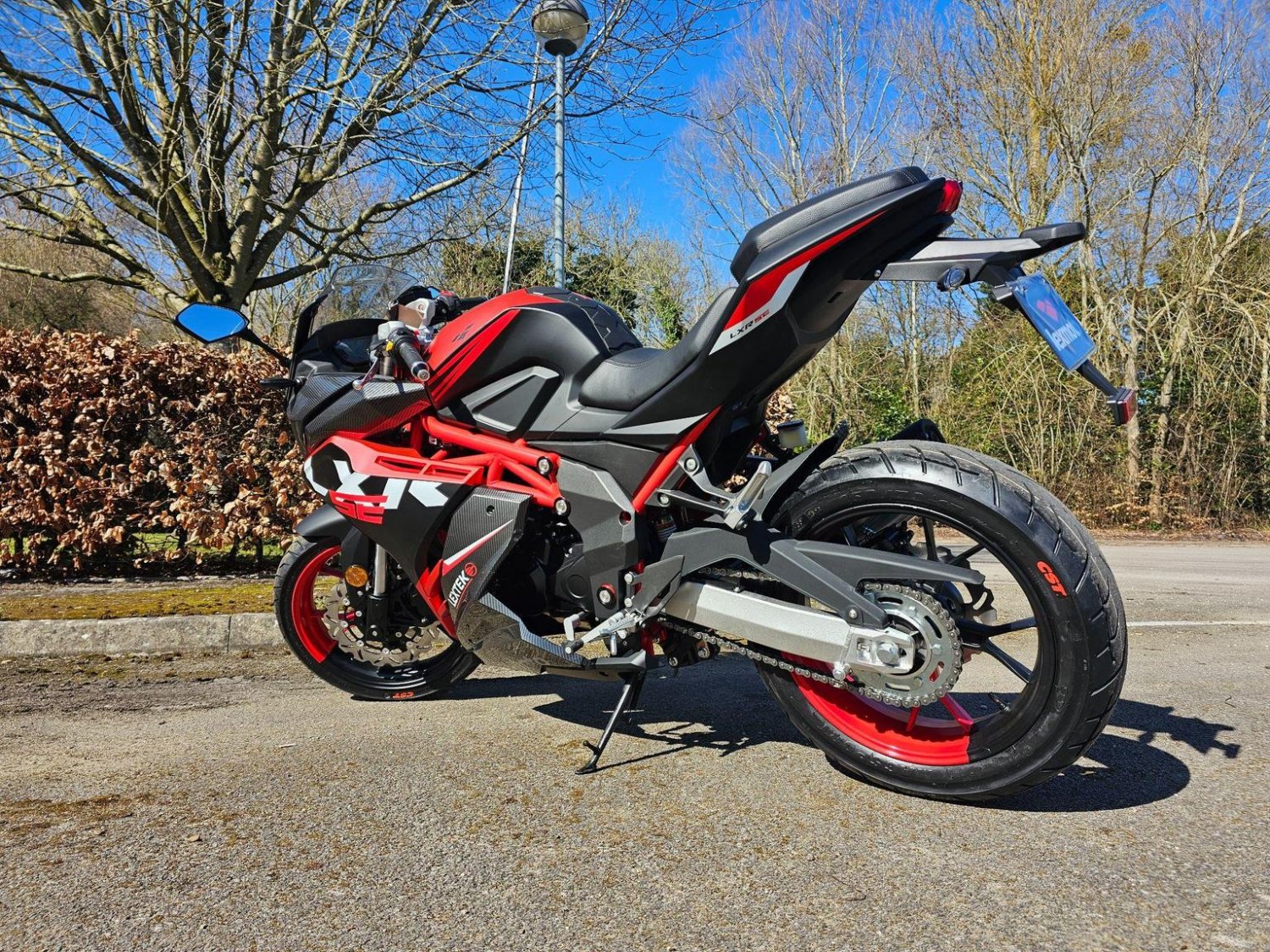 A proven class leader that`s dominated the sales charts, the LXR SE gets a full refresh for 2025. Updated to meet Euro 5.5 standards, at its heart sits an all-new 125cc single cylinder engine, offering better performance throughout the entire rev range, a better pick up on the throttle and a smoother ride. Performance isn`t the only headline figure though; a well-rounded chassis gives a sporting, yet comfortable experience. This is further complemented by a newly designed rear shock linkage, 37mm upside down forks and lightweight aluminium swingarm to give the LXR SE class leading handling. Upfront, the full colour TFT display unit adds a touch not seen before in the super sport 125 sector, and the aggressive LED headlight unit brings a distinctive look to the SE. Stopping comes courtesy of a twin petal disc brakes up front, with two pot callipers boasting yet another first in class. Our flagship model has just upped the ante considerably in the 125cc market, why not see what all the fuss is about?