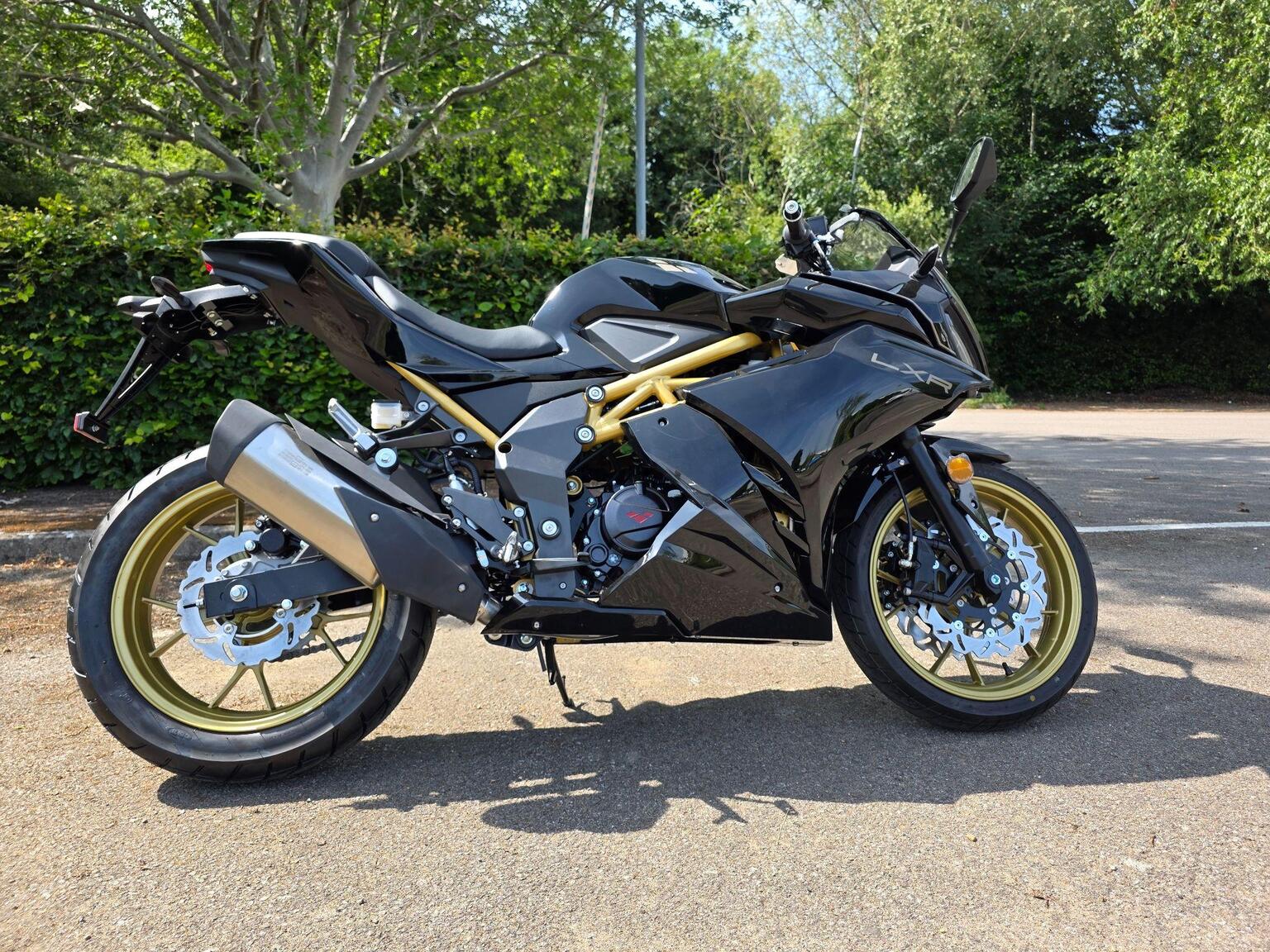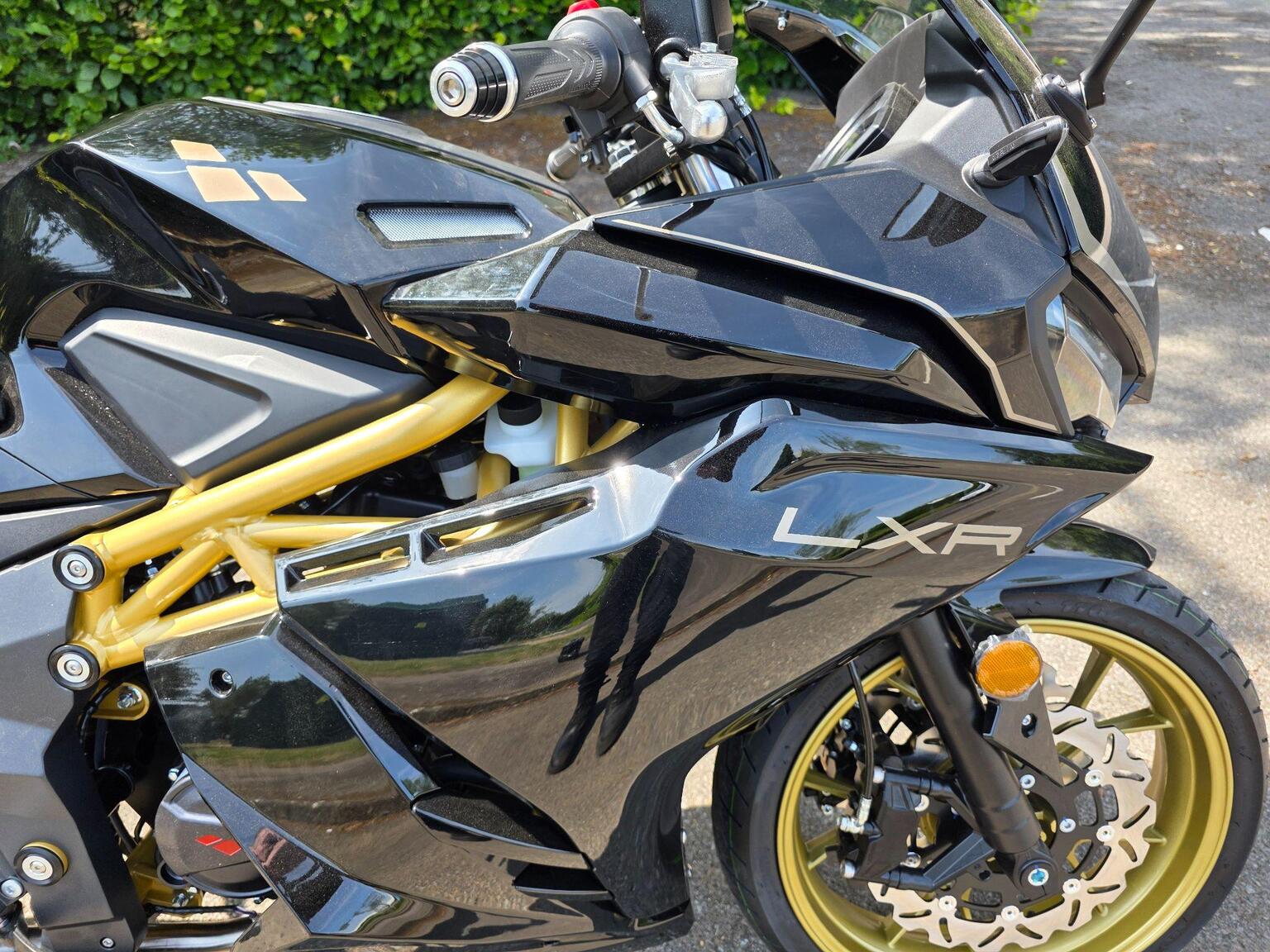 The LXR takes centre stage as Lexmoto`s flagship of the range. Its impressive set of features and menacing silhouette show clearly that this sports model is here to dominate the streets AND the market. Inspired by the race track, the LXR`s power comes from an ultra-smooth liquid cooled unit cloaked in a robust trellis type frame. The dual front disc brakes provide the stopping power needed while the telescopic front forks and mono-shock rear suspension supply the control. With those looks and feel, the LXR has been designed to provide the ultimate riding experience., The LXR, the best looking 125cc super sports on the market today. Exposed frame, Wide tyres and that brilliant liquid cooled engine.