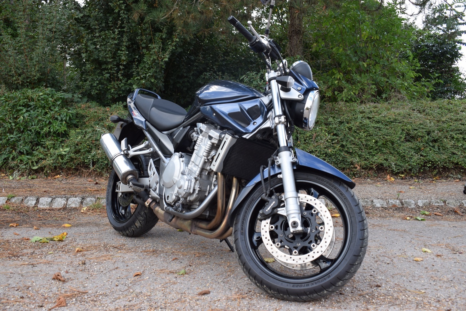 Here we have for sale another lovely Suzuki Bandit. But this time its not the 600 or the 1200 we are talking about its the younger brother to the original bandit, The Bandit GSF1250. Everything that. everyone loved about the mk1 bandit just made even better. More power than the older variants, A little bit more attention to detail with this new model, everything just seems to be finished off a bit nicer than the original bandits. tokico front caliper, Metallic grey frame to contrast the Metallic Blue Bodywork. Viper Rear Race can on this bike give es it a very nice exhaust note.