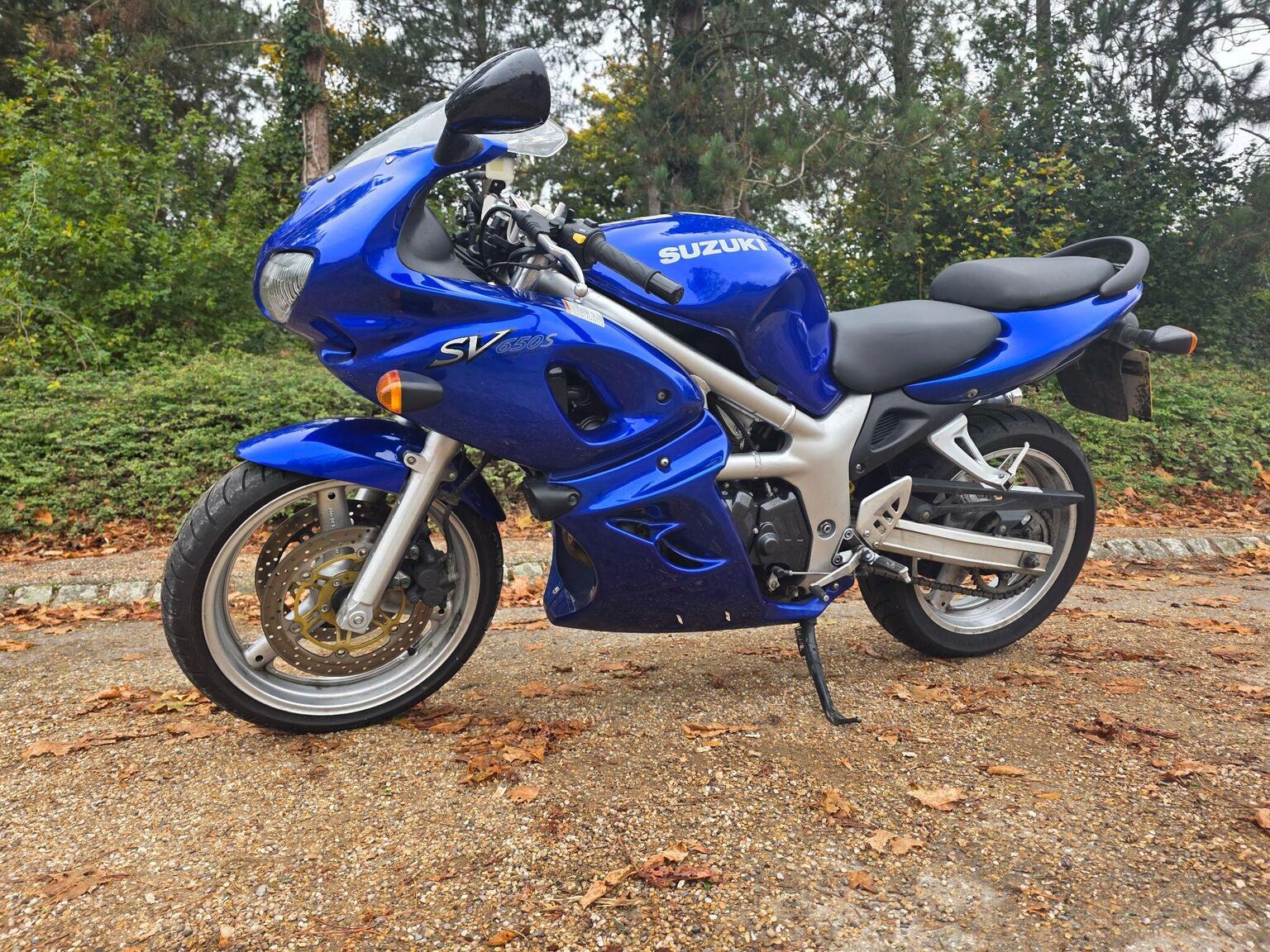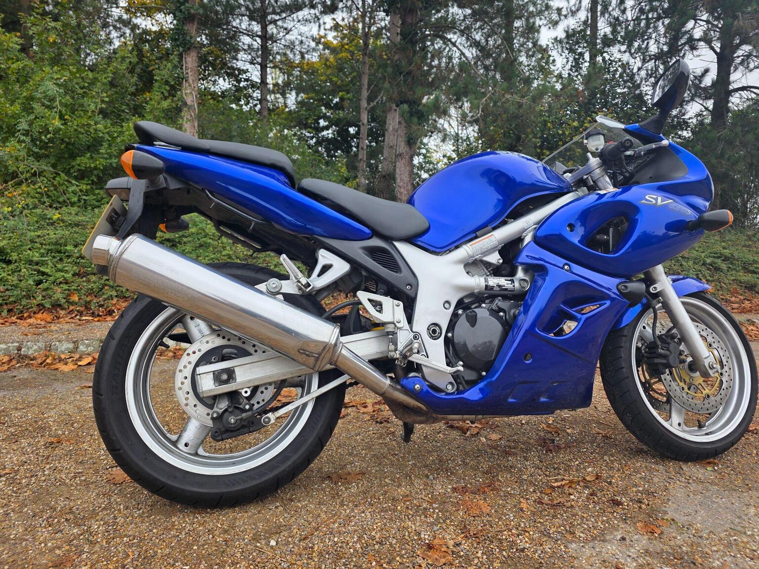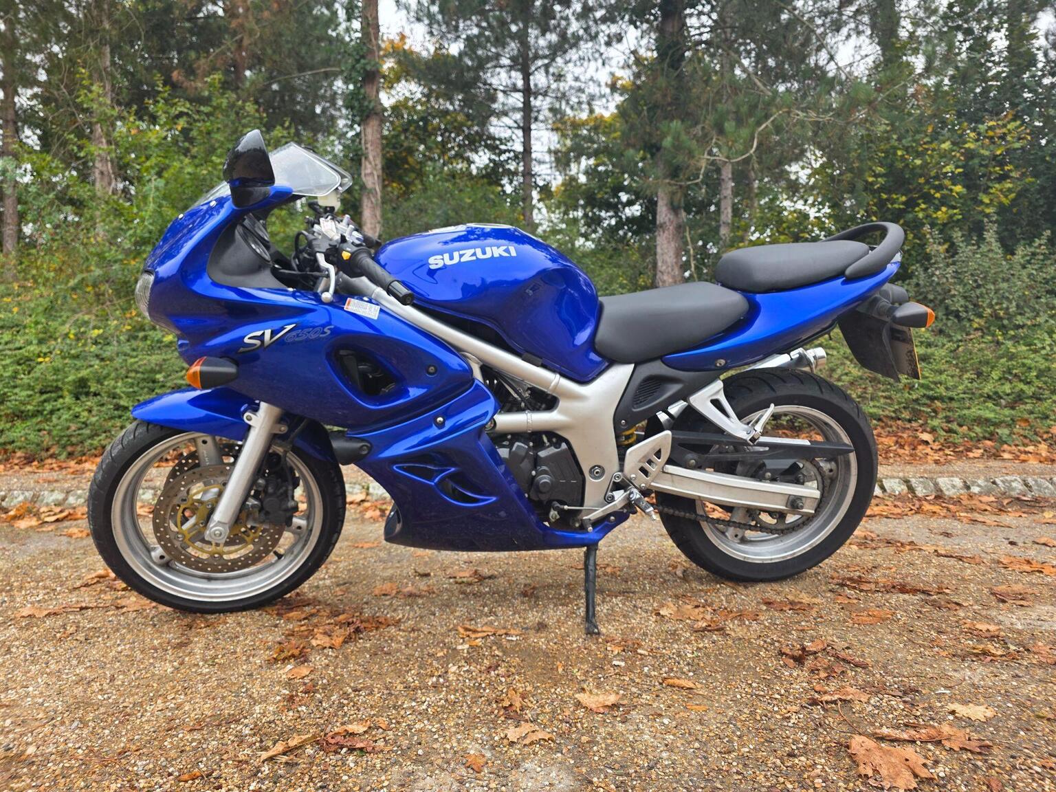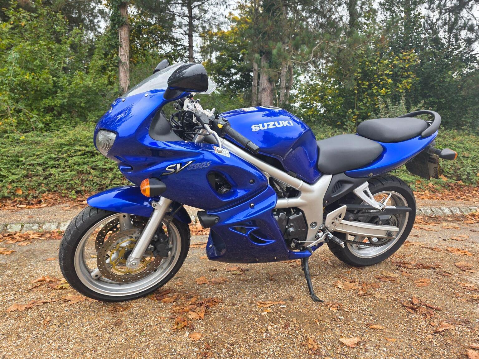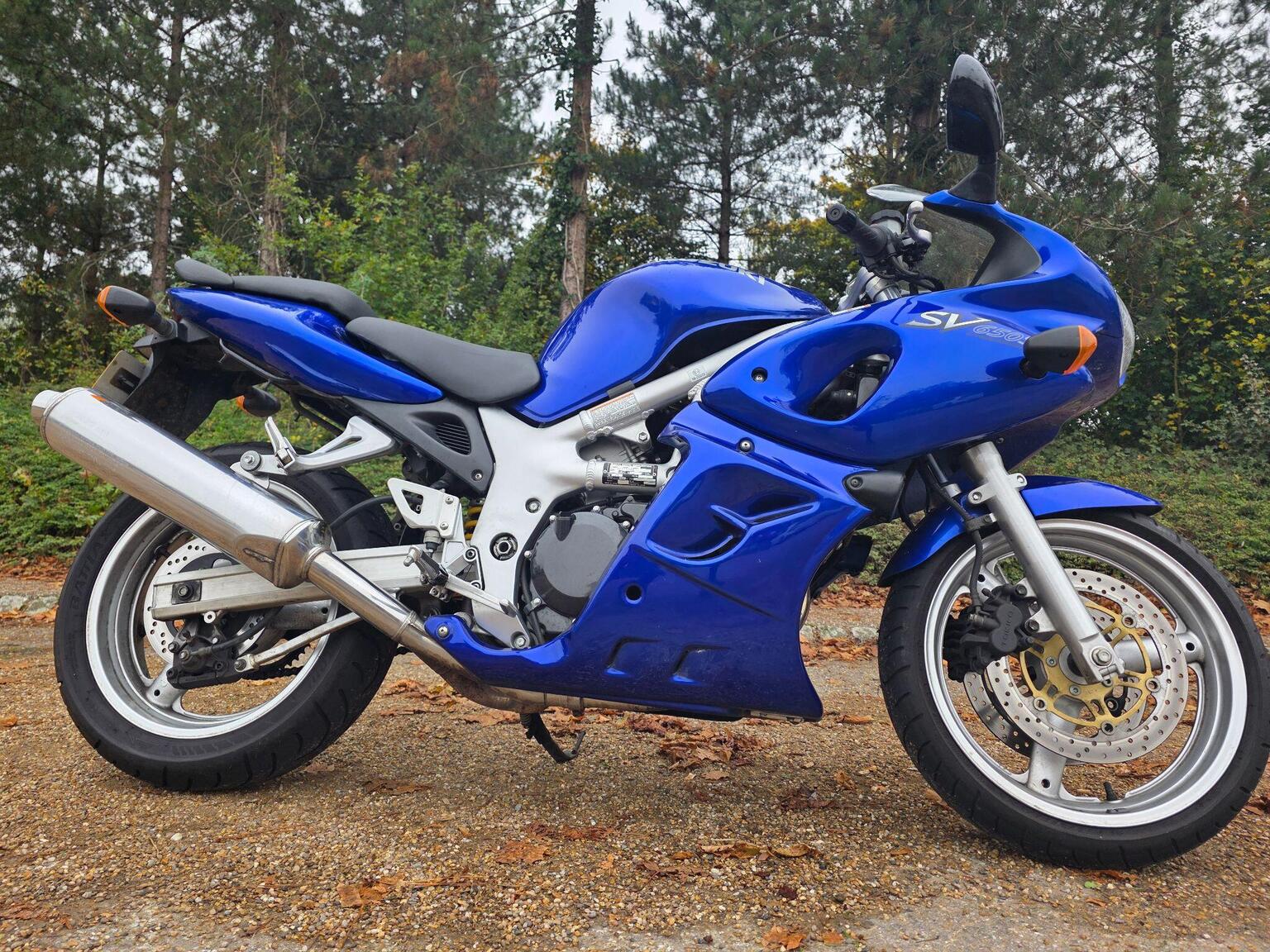 The Suzuki SV650S is 645cc liquid-cooled V-twin engine, producing around 73 bhp and 64Nm of torque. Key features include a 6-speed manual transmission, dual front discs and a single rear disc brake, and a comfortable riding position with mid-set foot controls. Dimensions are approximately 2,140 mm (84.3 in) in length and a seat height of 805 mm (31.7 in).