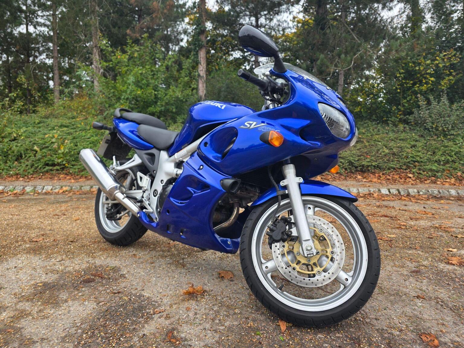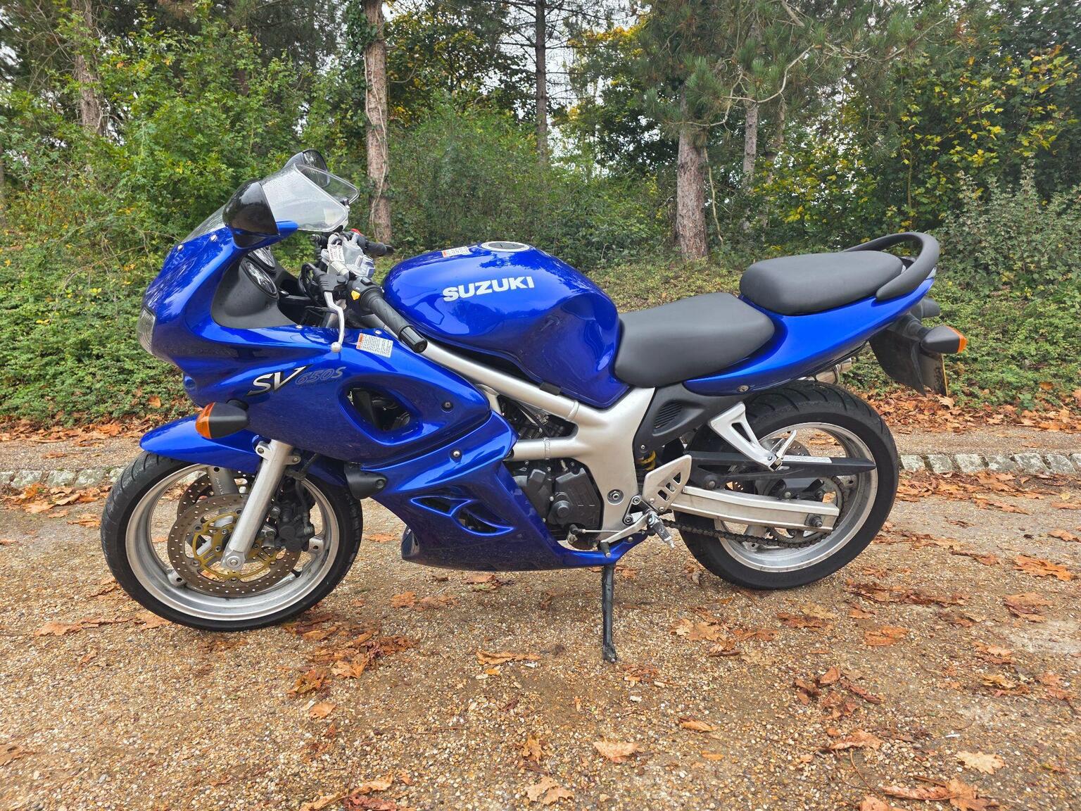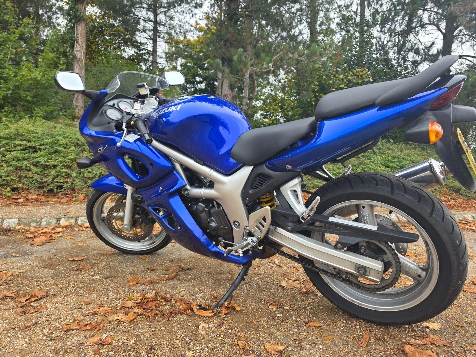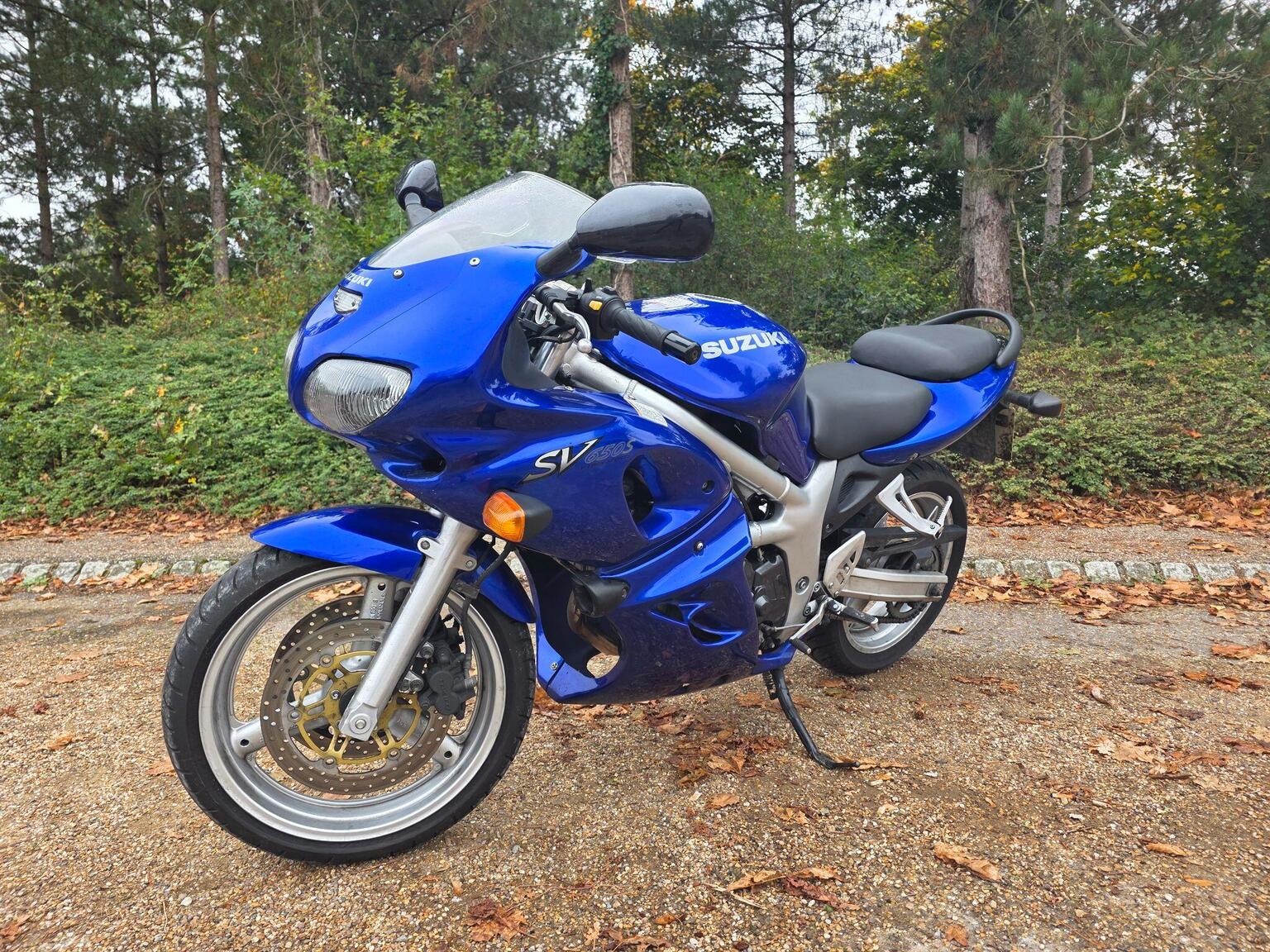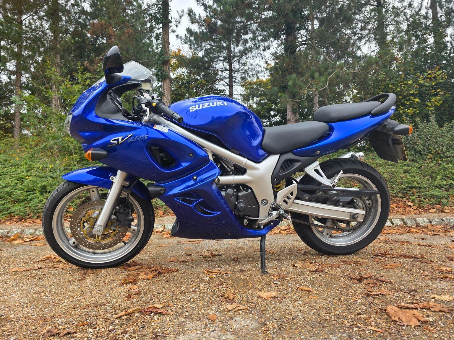 The Suzuki SV650S is 645cc liquid-cooled V-twin engine, producing around 73 bhp and 64Nm of torque. Key features include a 6-speed manual transmission, dual front discs and a single rear disc brake, and a comfortable riding position with mid-set foot controls. Dimensions are approximately 2,140 mm (84.3 in) in length and a seat height of 805 mm (31.7 in).