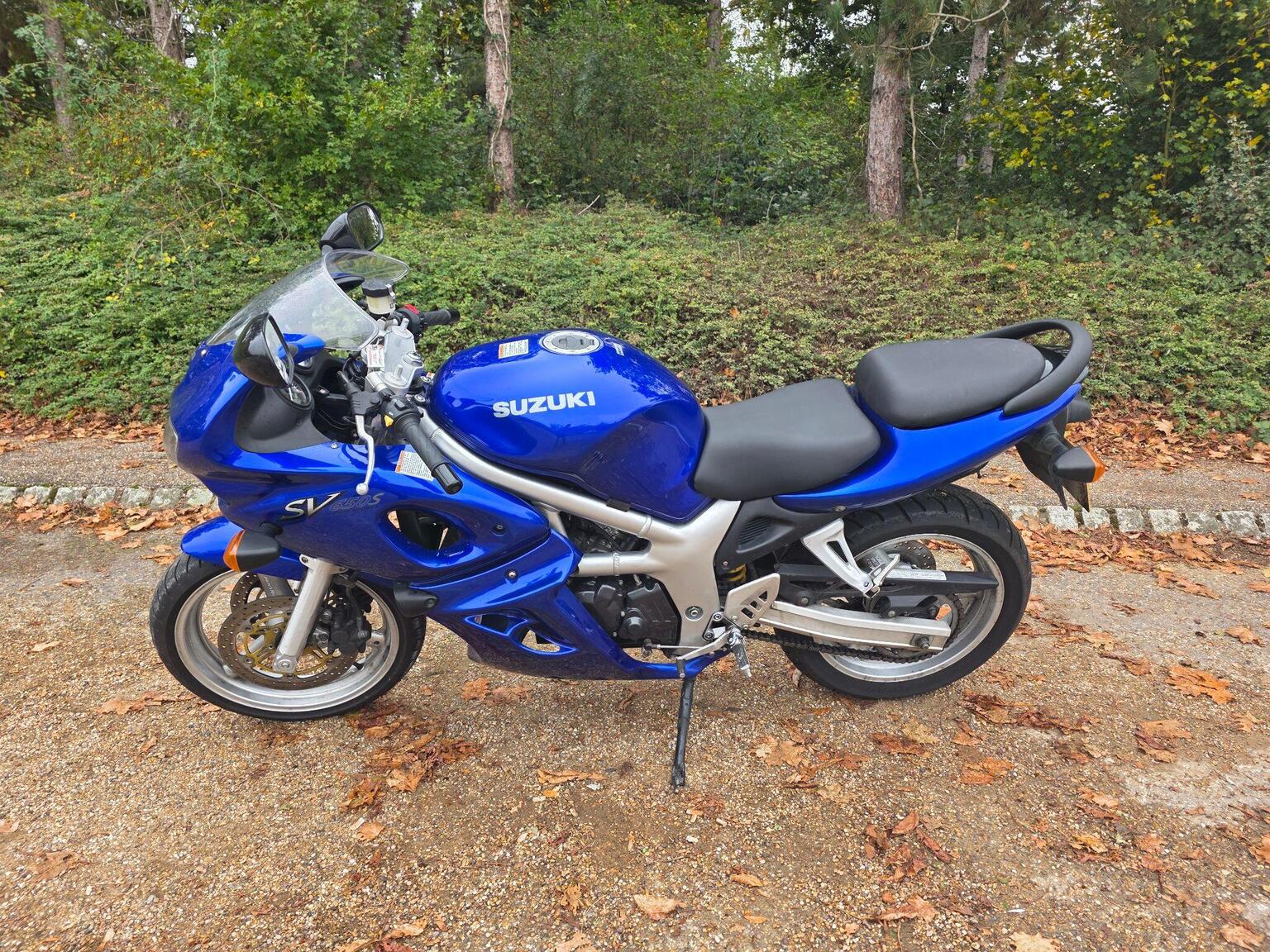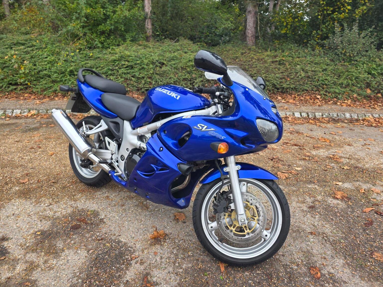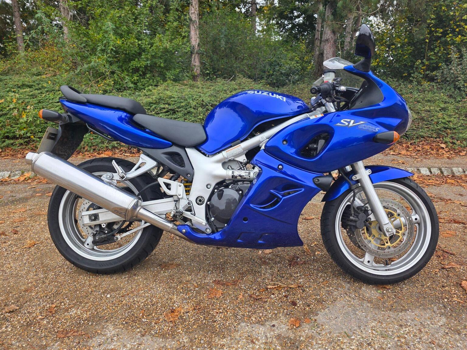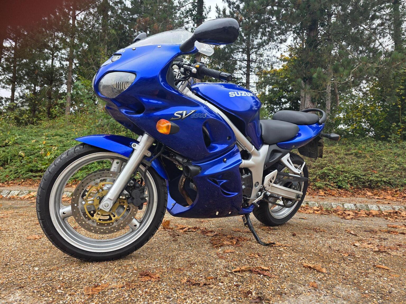 The Suzuki SV650S is 645cc liquid-cooled V-twin engine, producing around 73 bhp and 64Nm of torque. Key features include a 6-speed manual transmission, dual front discs and a single rear disc brake, and a comfortable riding position with mid-set foot controls. Dimensions are approximately 2,140 mm (84.3 in) in length and a seat height of 805 mm (31.7 in).