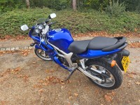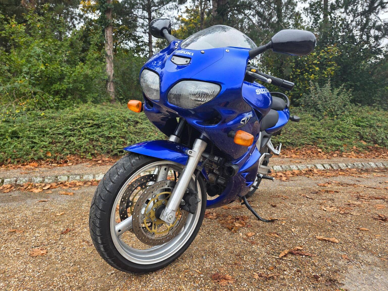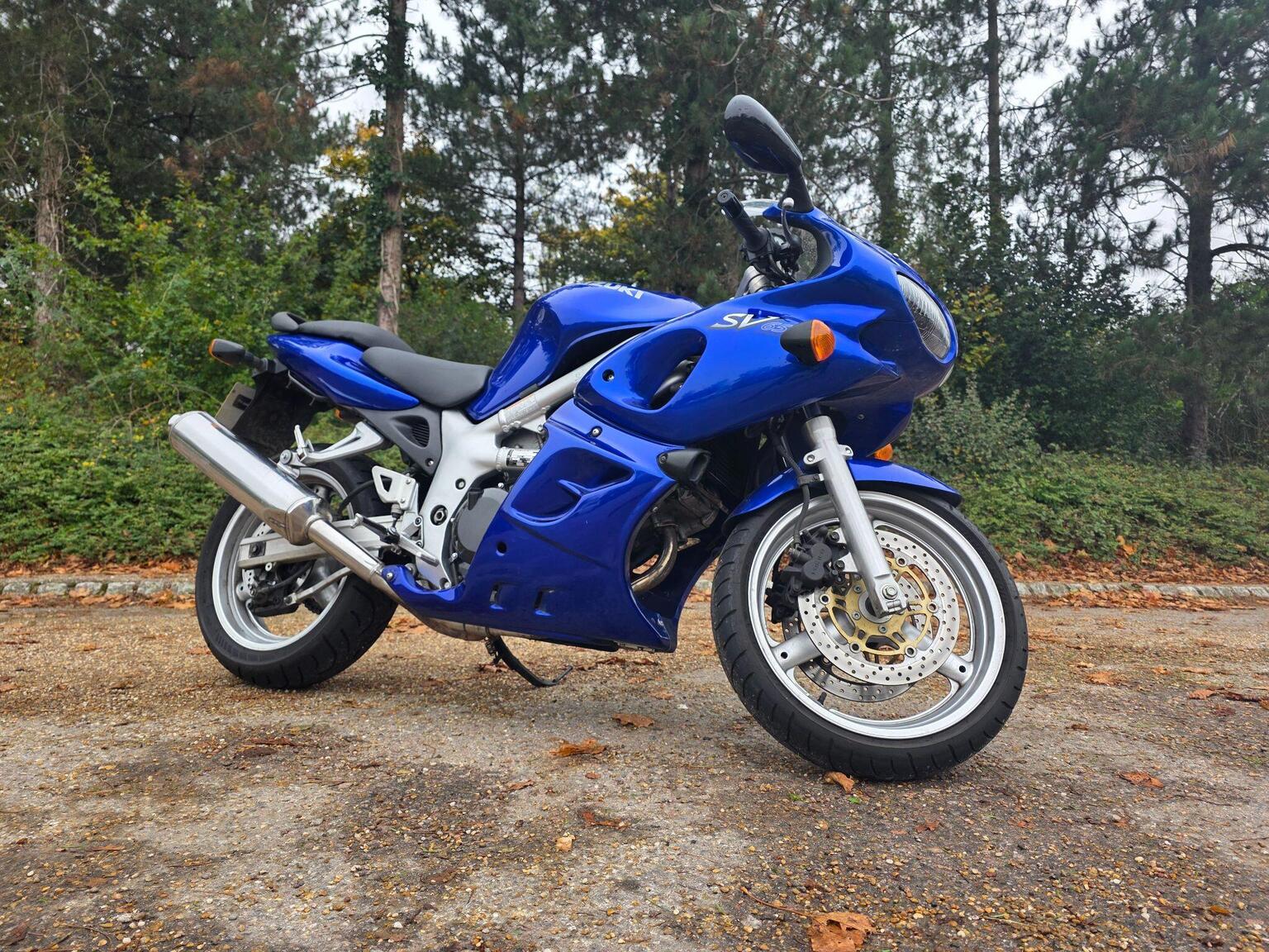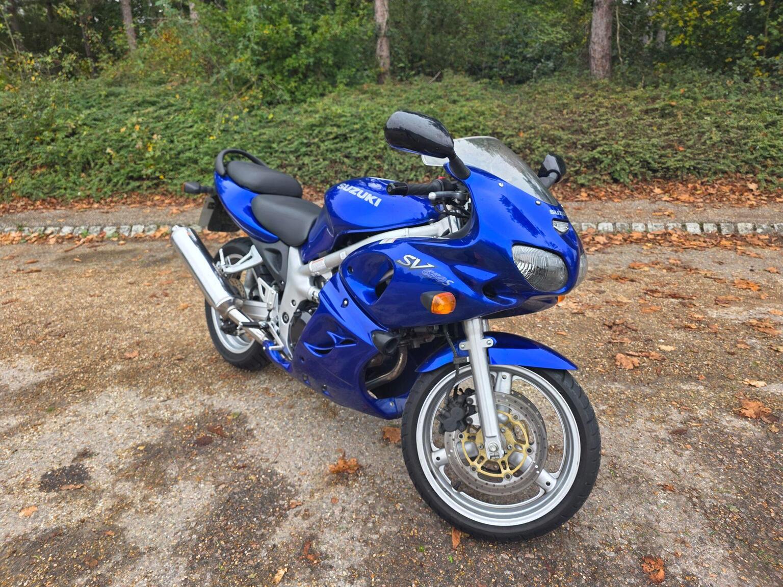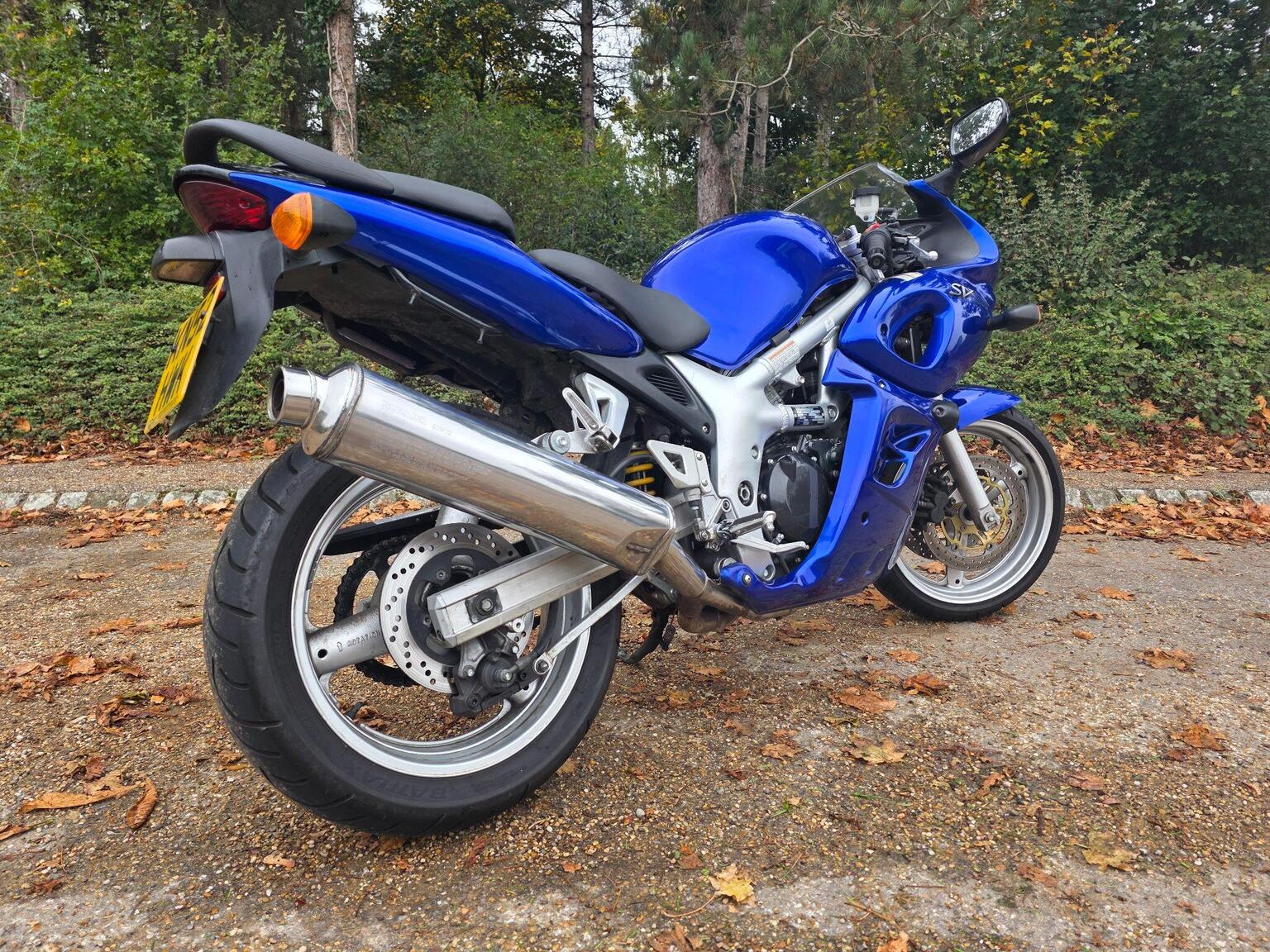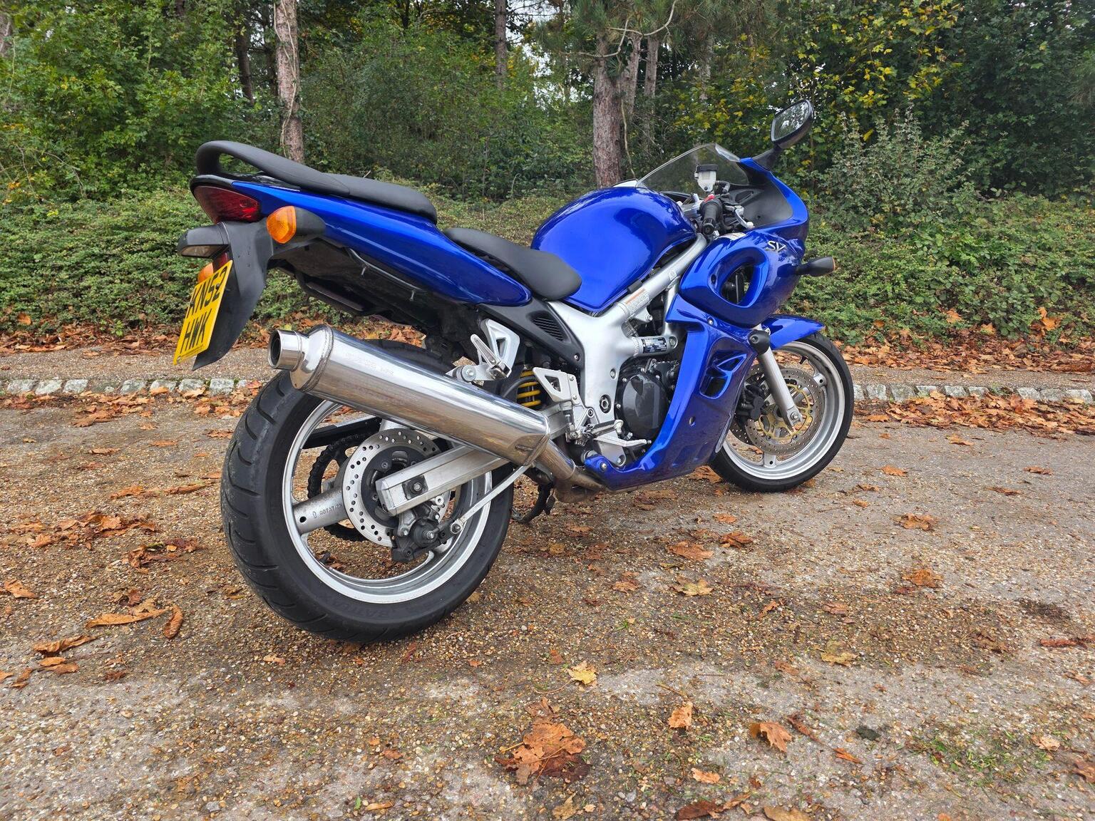 The Suzuki SV650S is 645cc liquid-cooled V-twin engine, producing around 73 bhp and 64Nm of torque. Key features include a 6-speed manual transmission, dual front discs and a single rear disc brake, and a comfortable riding position with mid-set foot controls. Dimensions are approximately 2,140 mm (84.3 in) in length and a seat height of 805 mm (31.7 in).