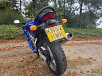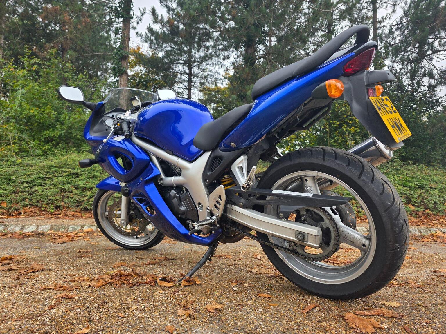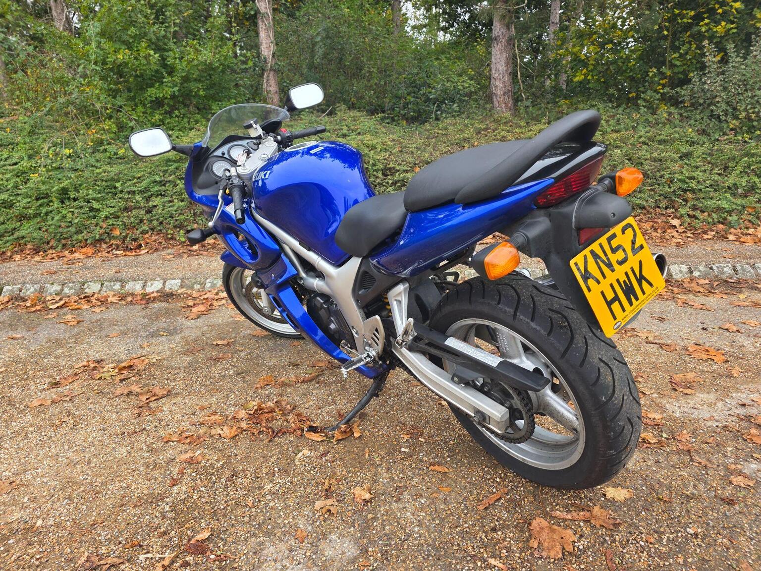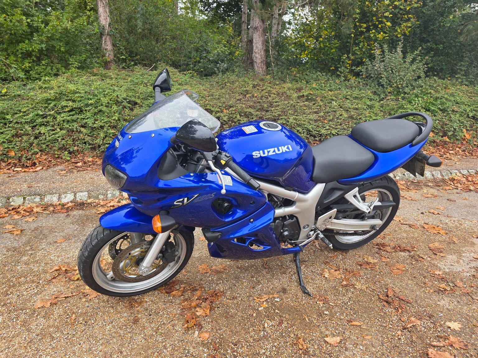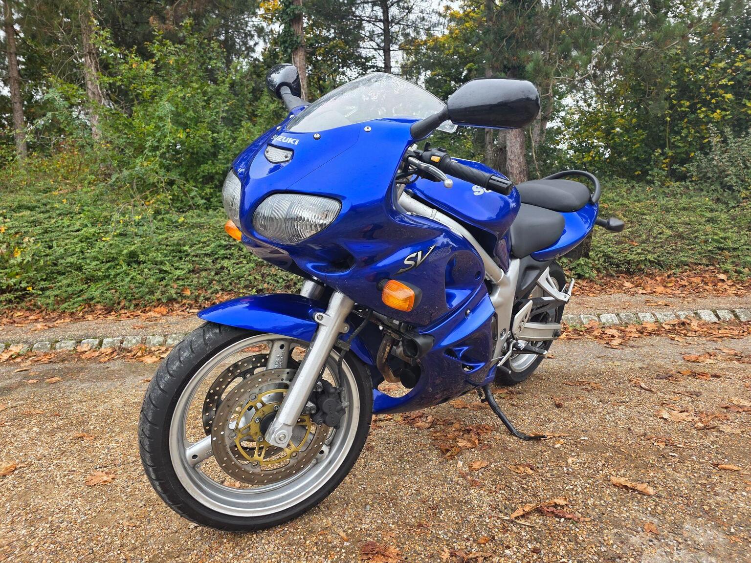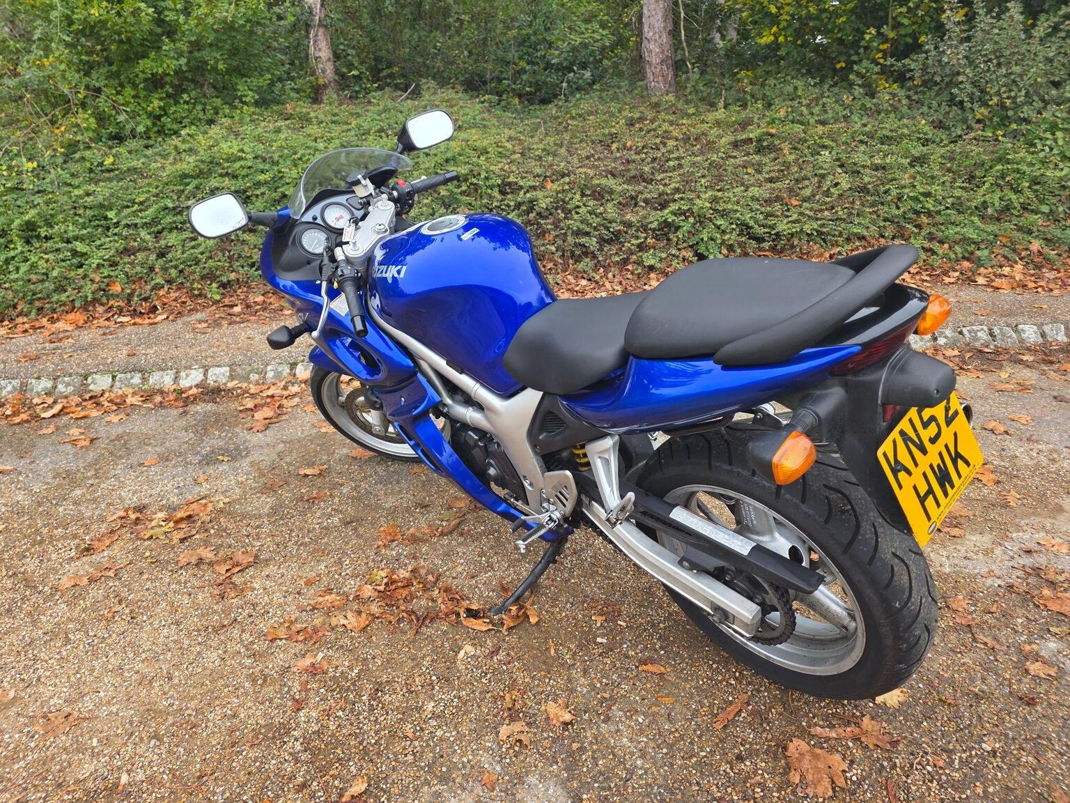 The Suzuki SV650S is 645cc liquid-cooled V-twin engine, producing around 73 bhp and 64Nm of torque. Key features include a 6-speed manual transmission, dual front discs and a single rear disc brake, and a comfortable riding position with mid-set foot controls. Dimensions are approximately 2,140 mm (84.3 in) in length and a seat height of 805 mm (31.7 in).