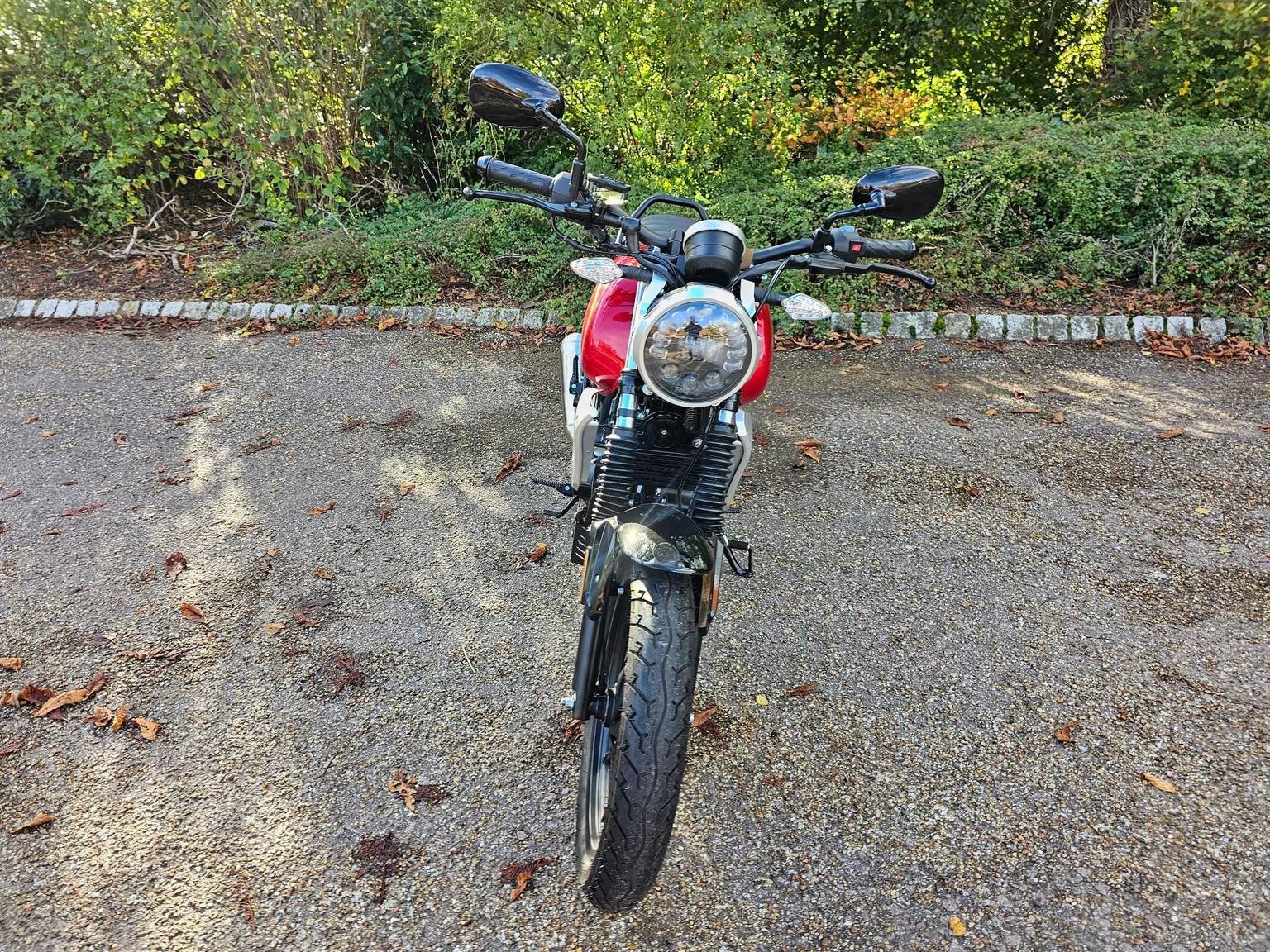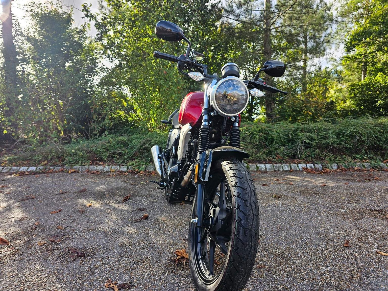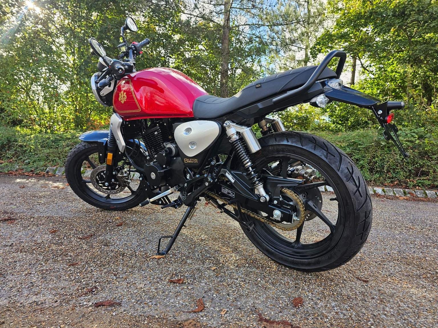 Comes as standard with electric and kick start, five speed, chain drive, 4 stroke engine, Excellent fuel economy.