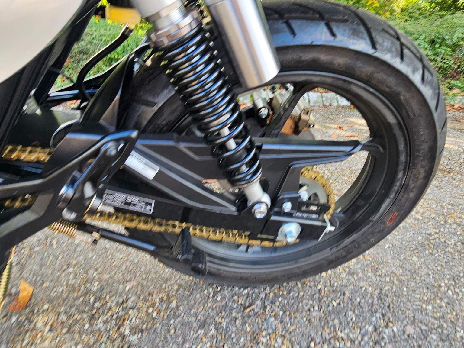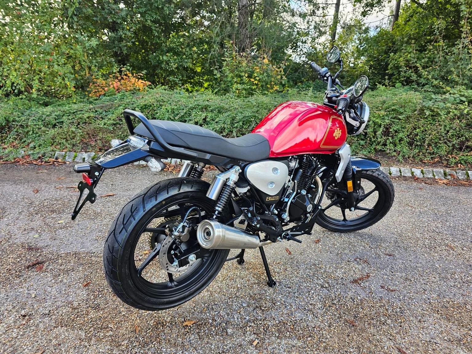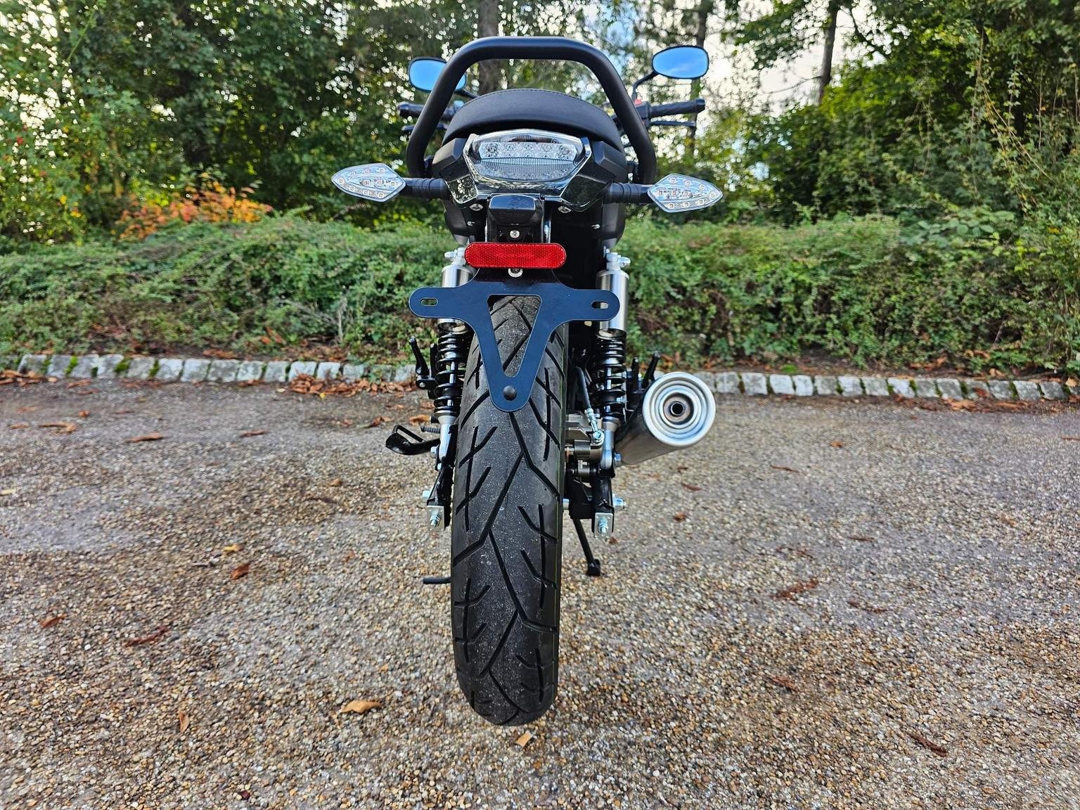 Comes as standard with electric and kick start, five speed, chain drive, 4 stroke engine, Excellent fuel economy.