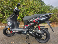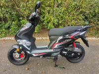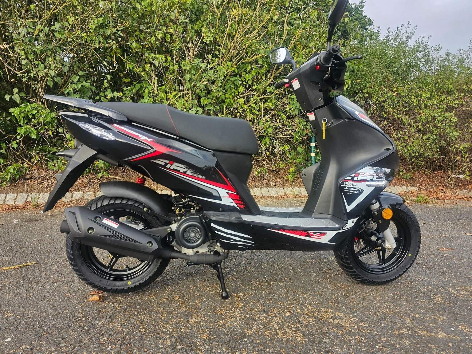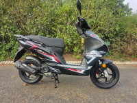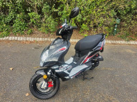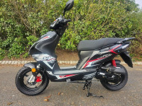 Standard equipment includes, under seat storage, rear luggage rack which will accept our optional Luggage Box, mirrors, dual marked speedometer, a fuel gauge and aluminium foot boards.