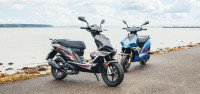 Finished in brilliant metallic Cobalt Blue, Glossy Black or Pearl white with vibrant graphics under a clear coat of lacquer.