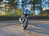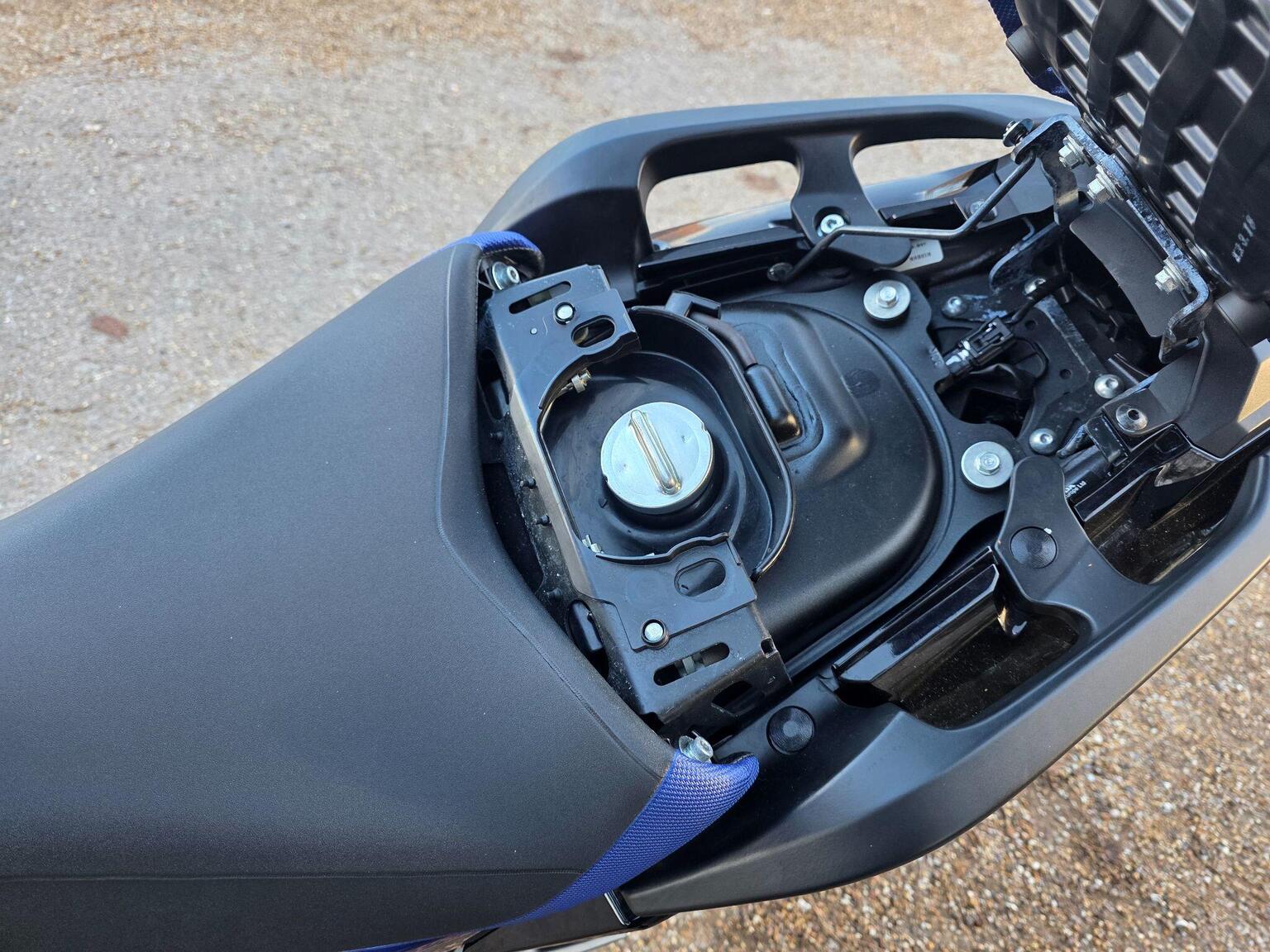 Storage: A distinctive 23-liter storage compartment is located in front of the rider, where a traditional fuel tank would be.