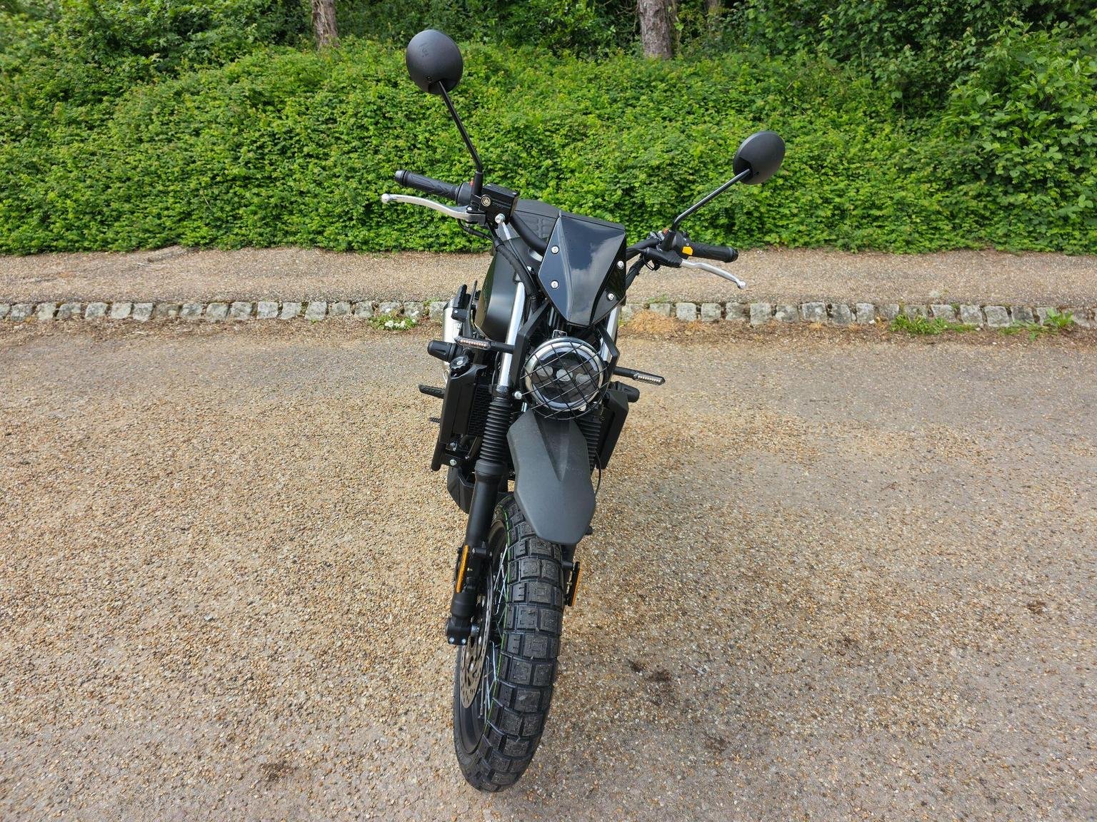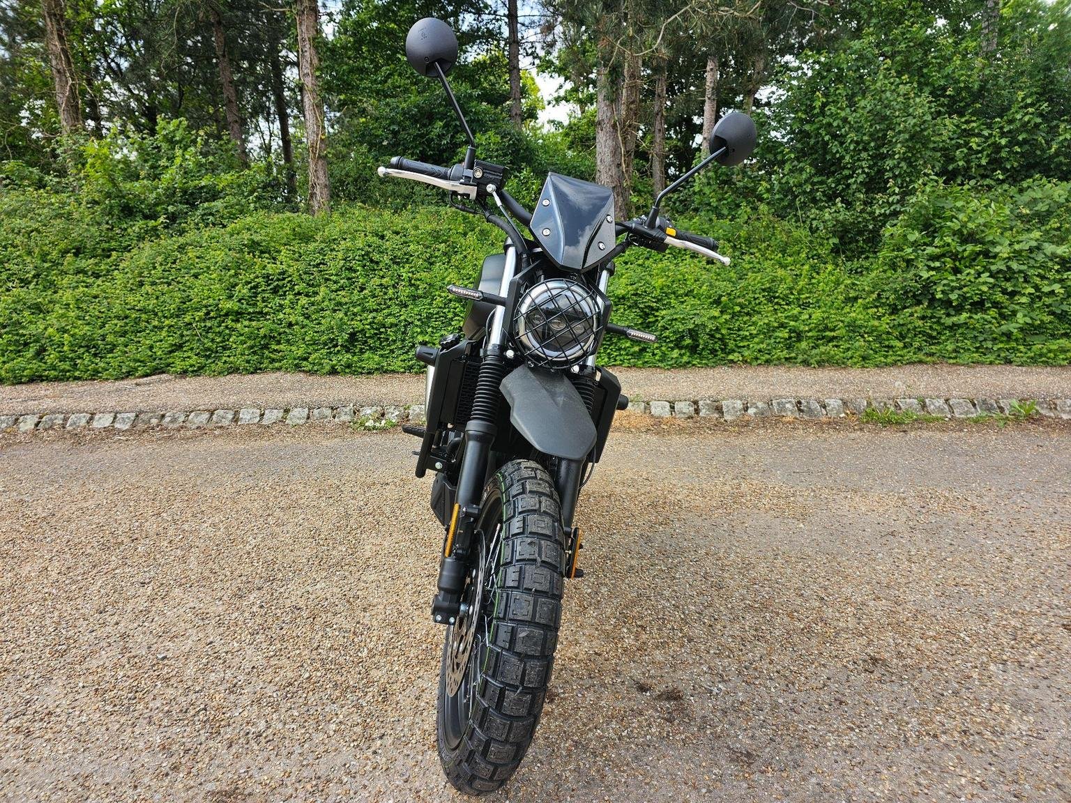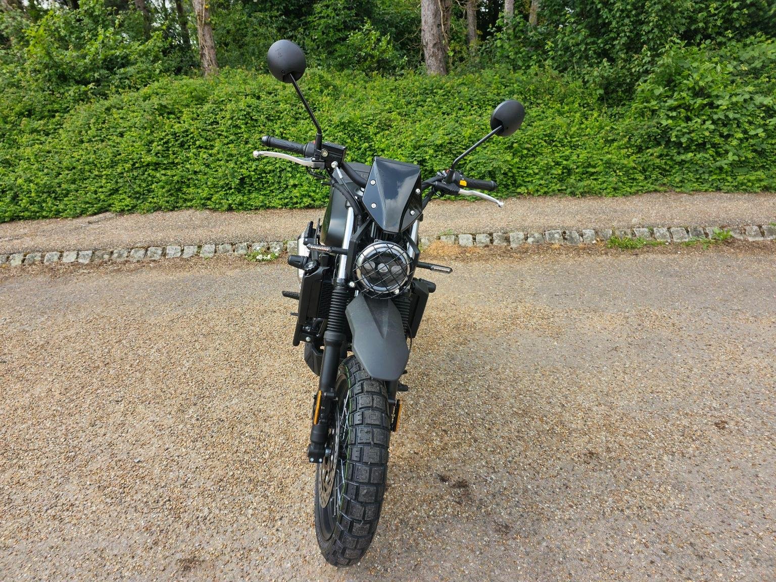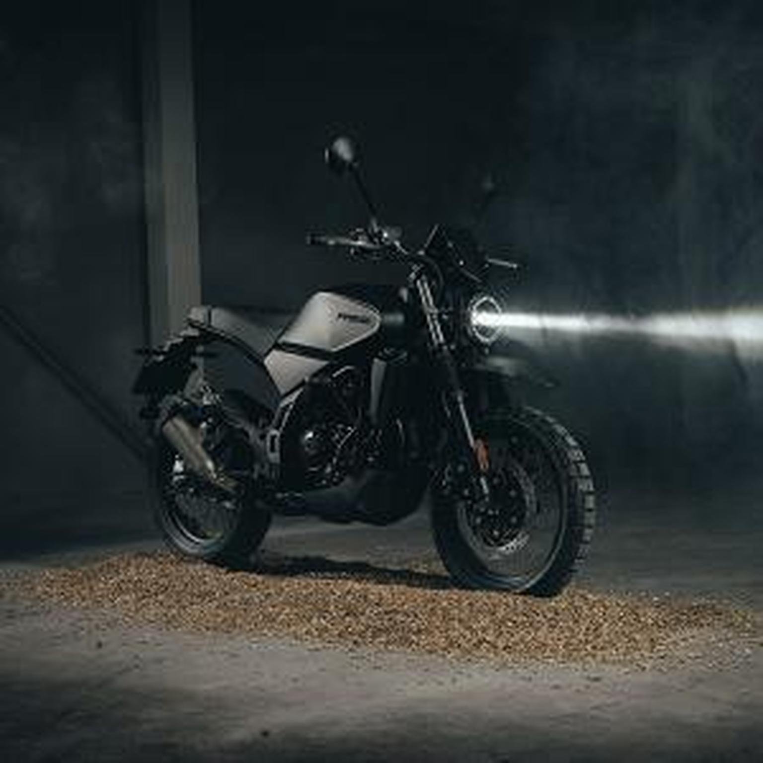 A modern take on a classic silhouette. A captivating blend of contemporary design and a nostalgic nod to the classic scrambler ethos, seamlessly fusing modern aesthetics with a timeless, old-school charm.