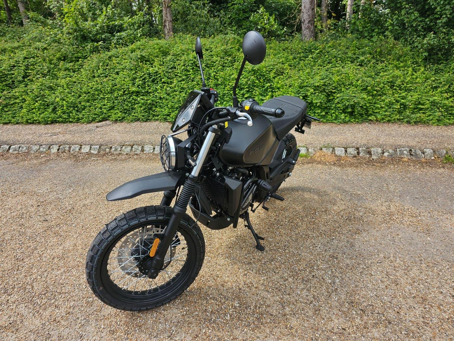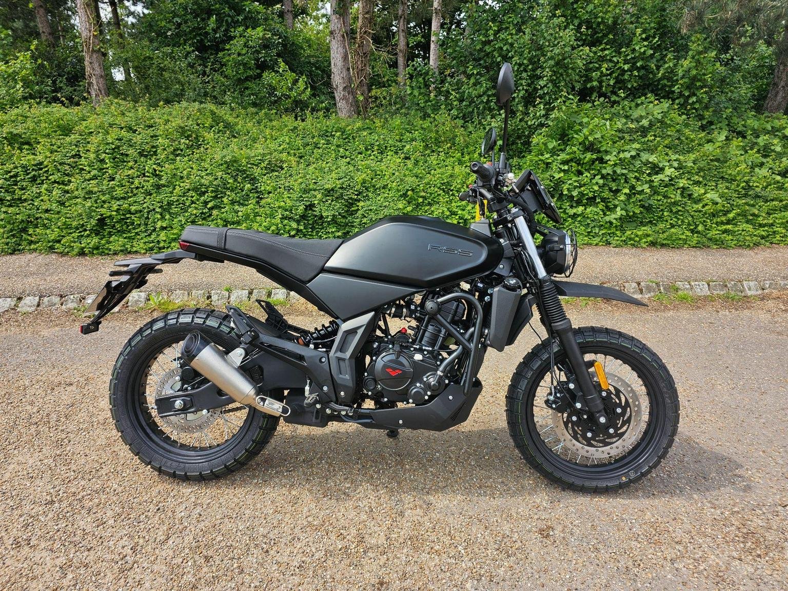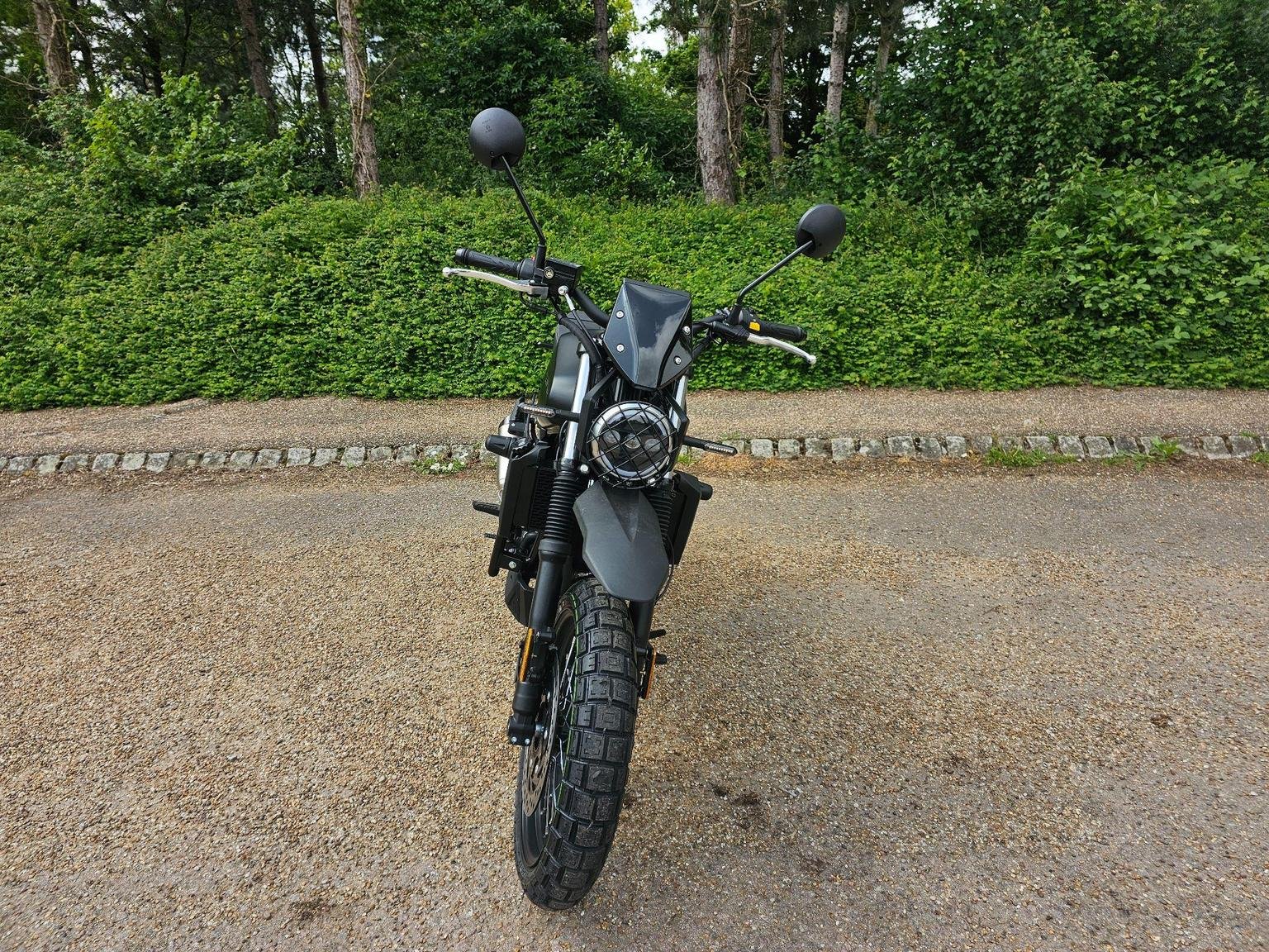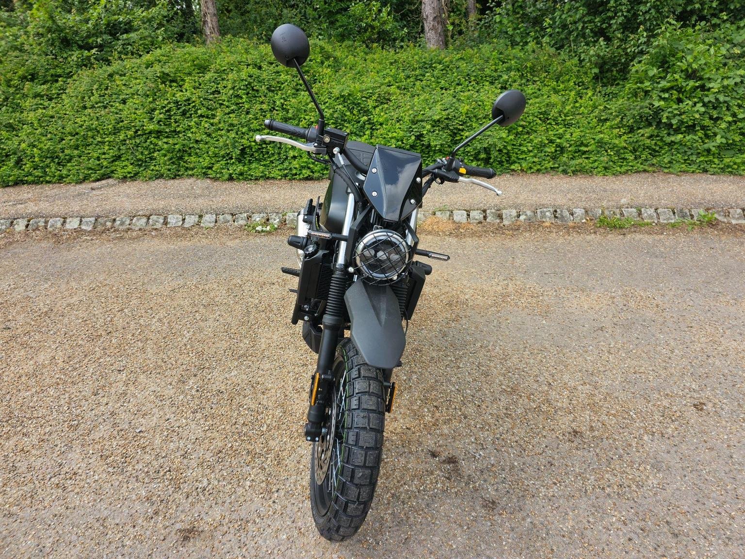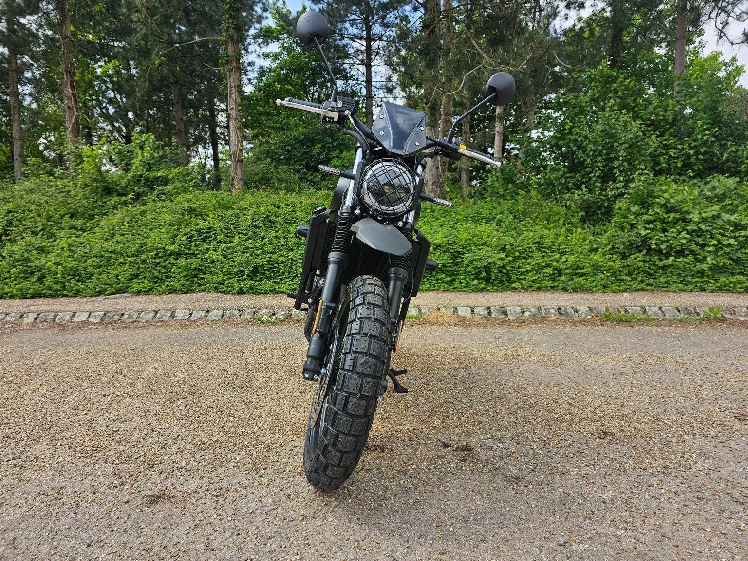 A modern take on a classic silhouette. A captivating blend of contemporary design and a nostalgic nod to the classic scrambler ethos, seamlessly fusing modern aesthetics with a timeless, old-school charm.