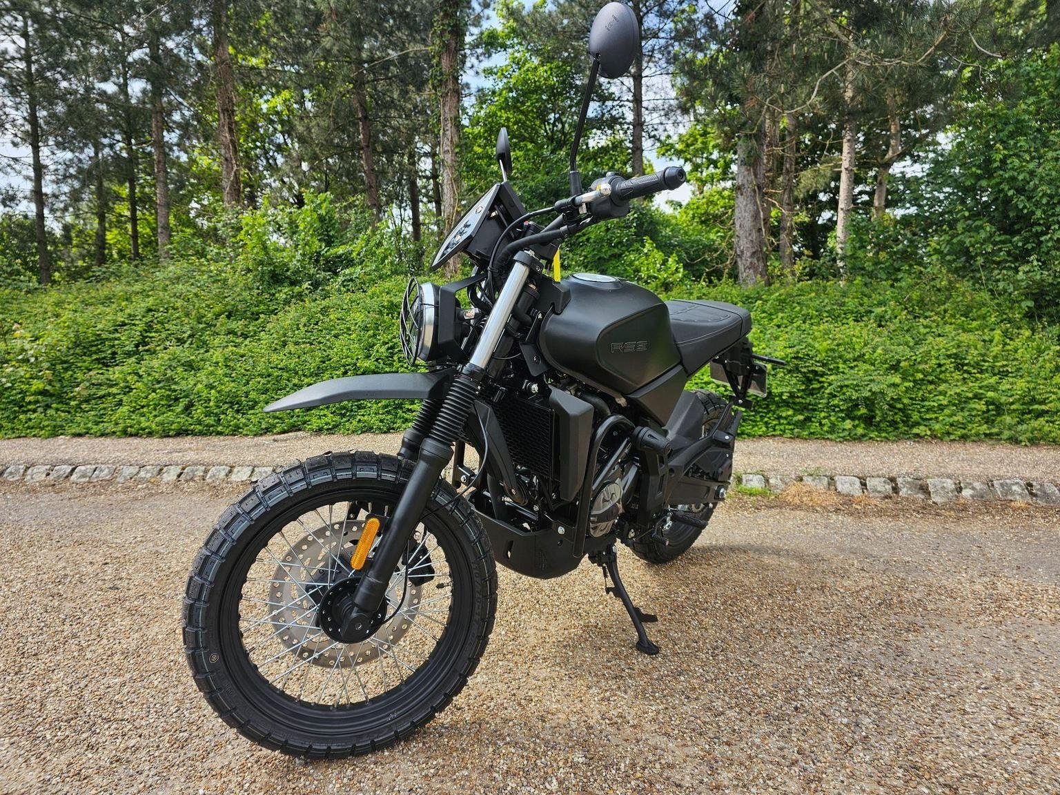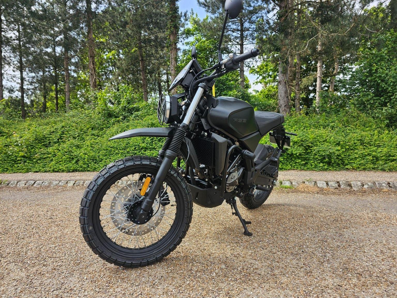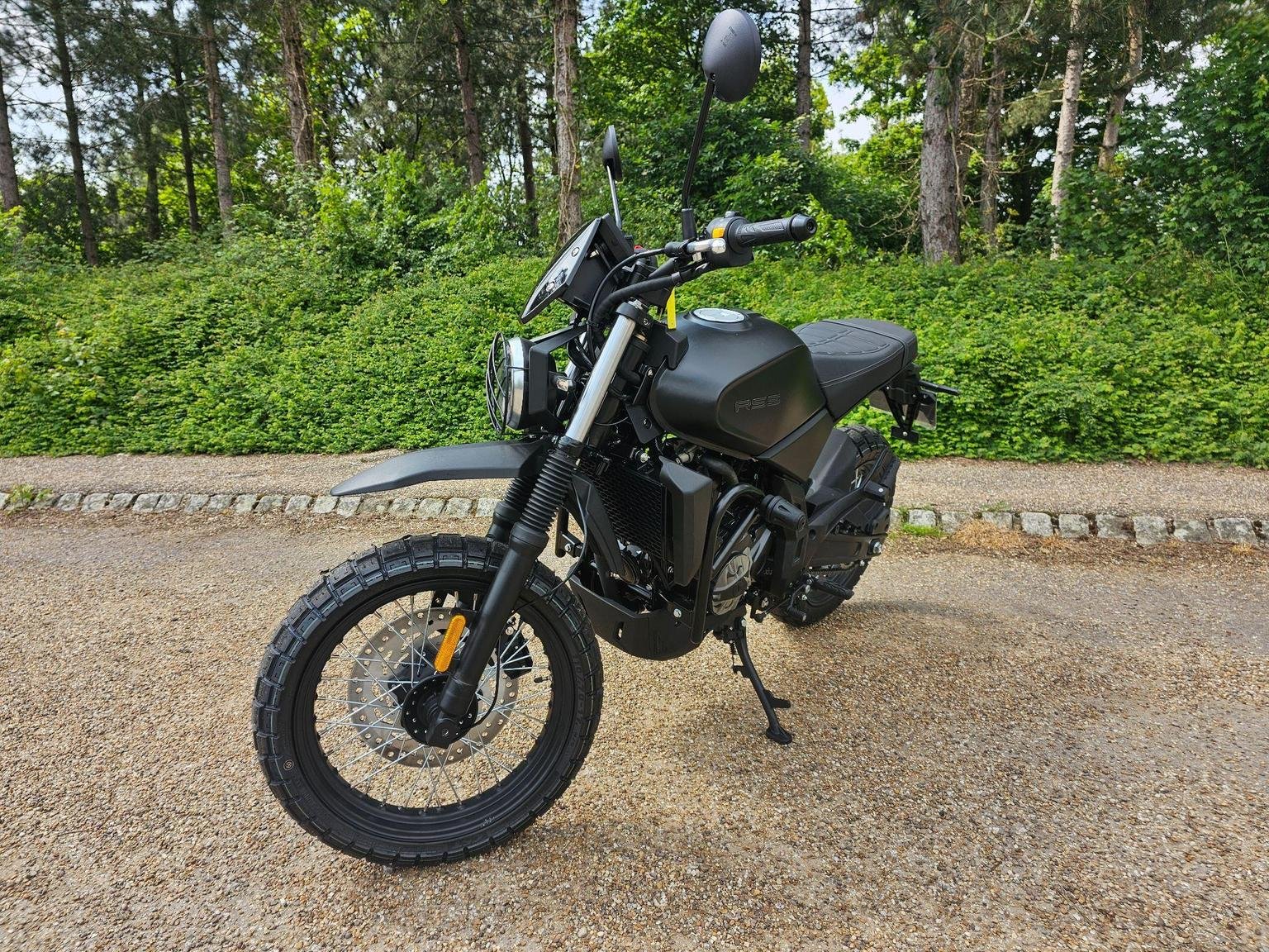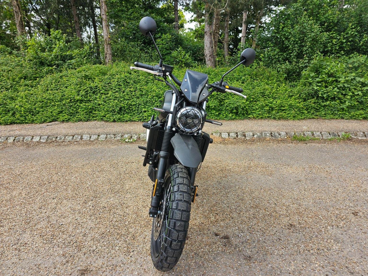A modern take on a classic silhouette. A captivating blend of contemporary design and a nostalgic nod to the classic scrambler ethos, seamlessly fusing modern aesthetics with a timeless, old-school charm.